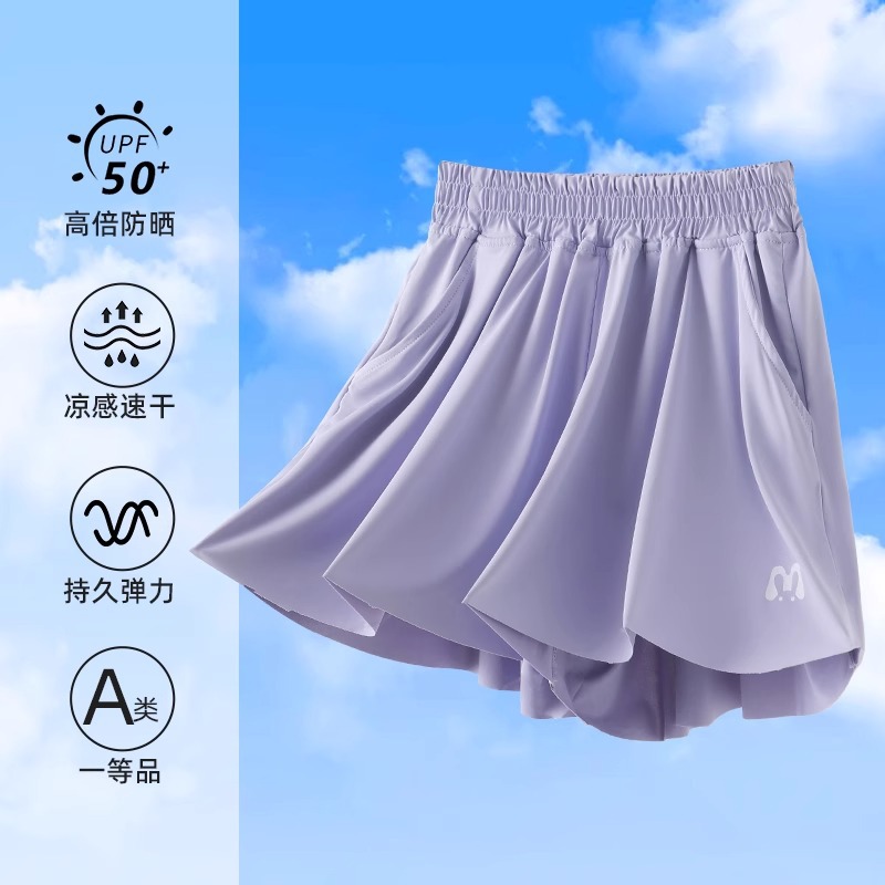 여아 스포츠 테니스 스커트 바지 여름 바지 어린이 속건 반바지 큰 어린이 얼음 실크 스커트 바지 대외 무역 아동 의류 크로스 보더