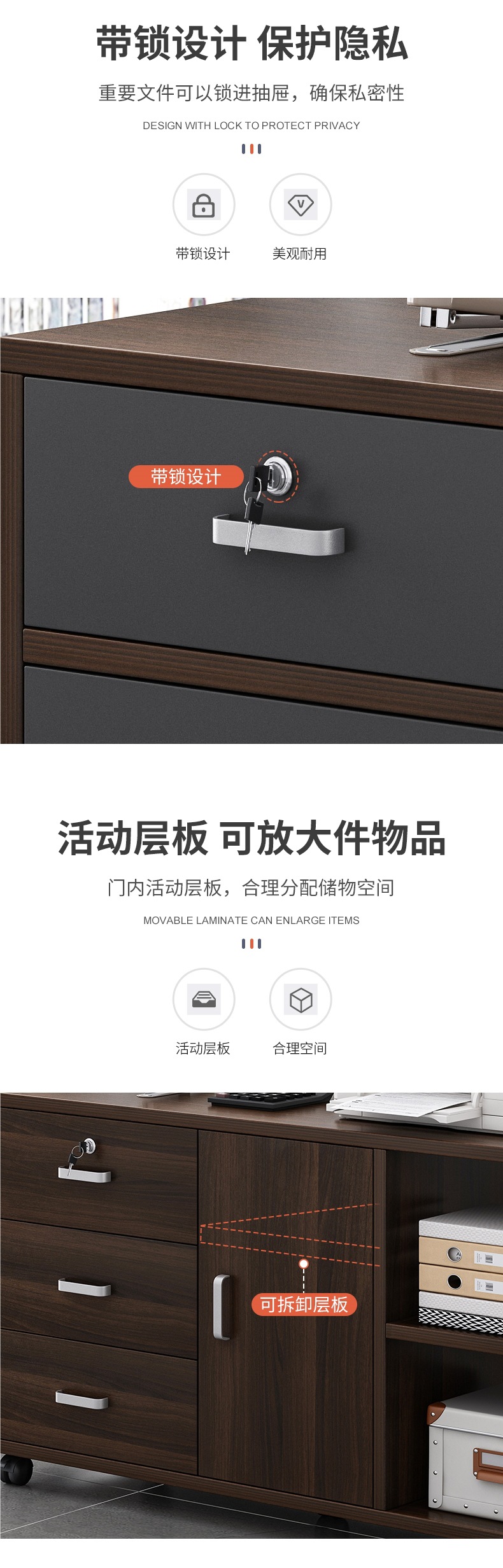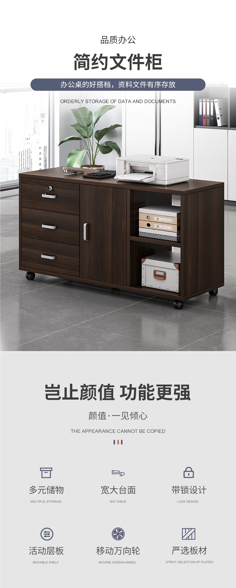 책상 밑 서류 캐비닛 사무실 캐비닛 잠금 장치가 있는 목재 사이드 캐비닛 사무실 캐비닛 프린터 서랍 캐비닛 낮은 캐비닛 보관 캐비닛