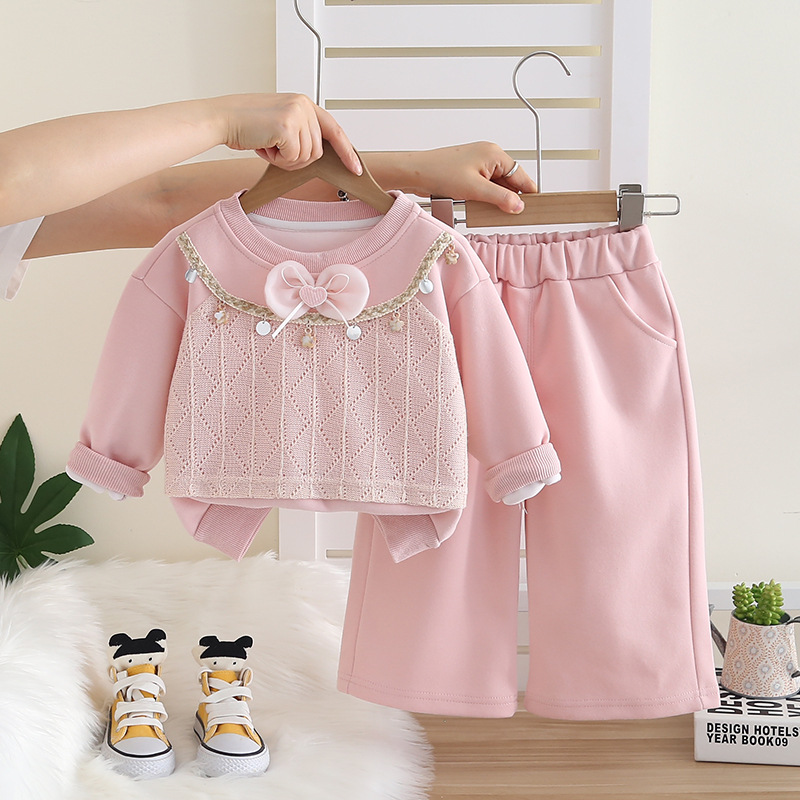 여자 나비 넥타이 운동복 정장 봄과 가을 스타일 아기 소녀 유행 가을 옷 어린 소녀 스포츠 투피스 양복