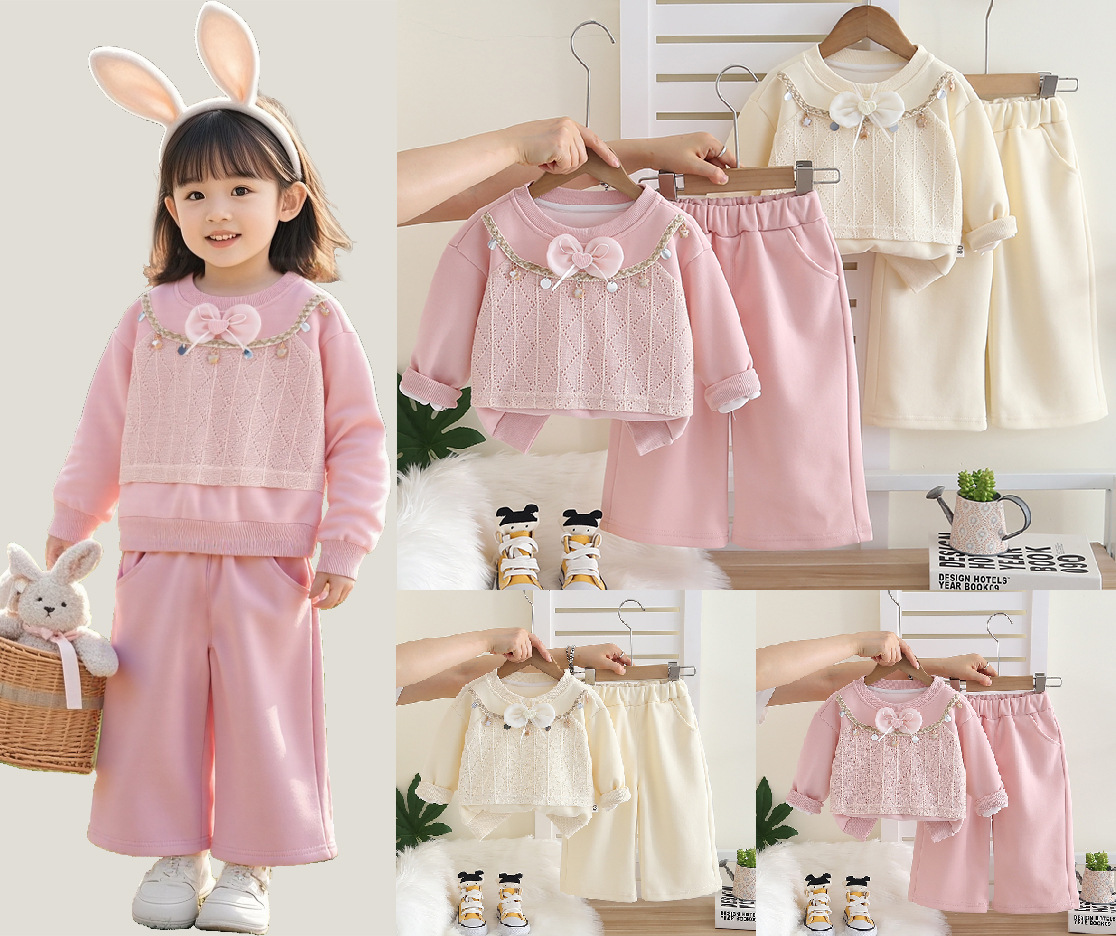 여자 나비 넥타이 운동복 정장 봄과 가을 스타일 아기 소녀 유행 가을 옷 어린 소녀 스포츠 투피스 양복스토어 가기