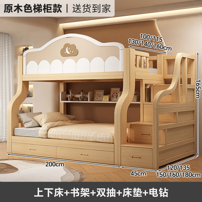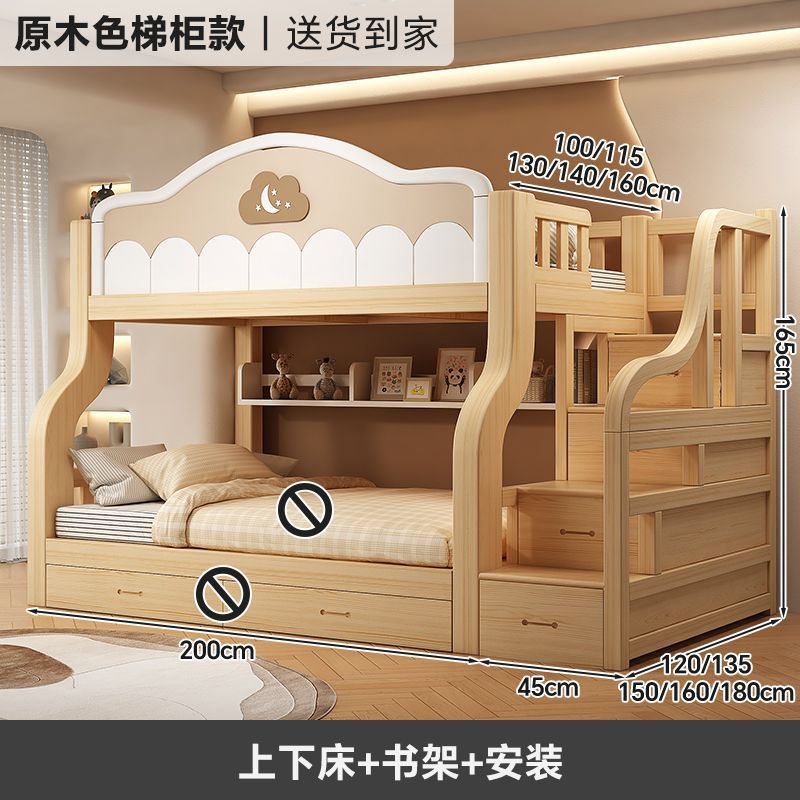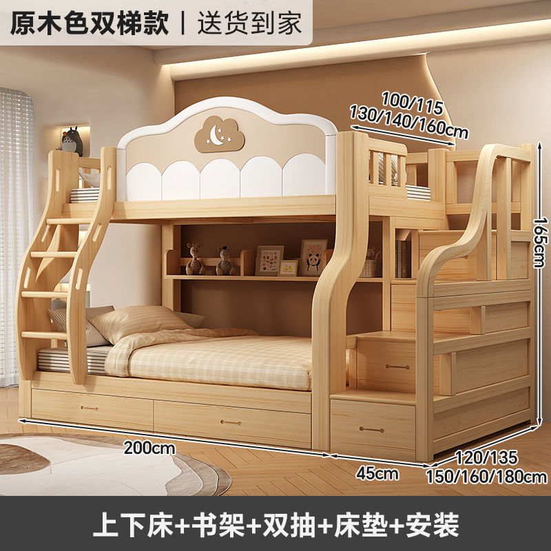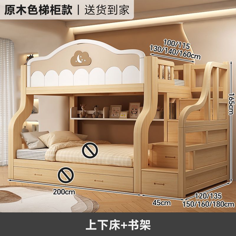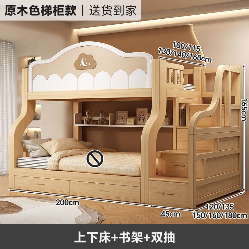 원목 이층침대, 다기능 어린이침대, 소형 이층침대, 두꺼운 성인용 높낮이 침대