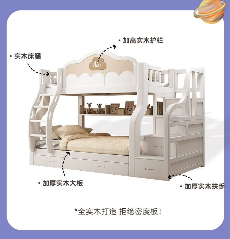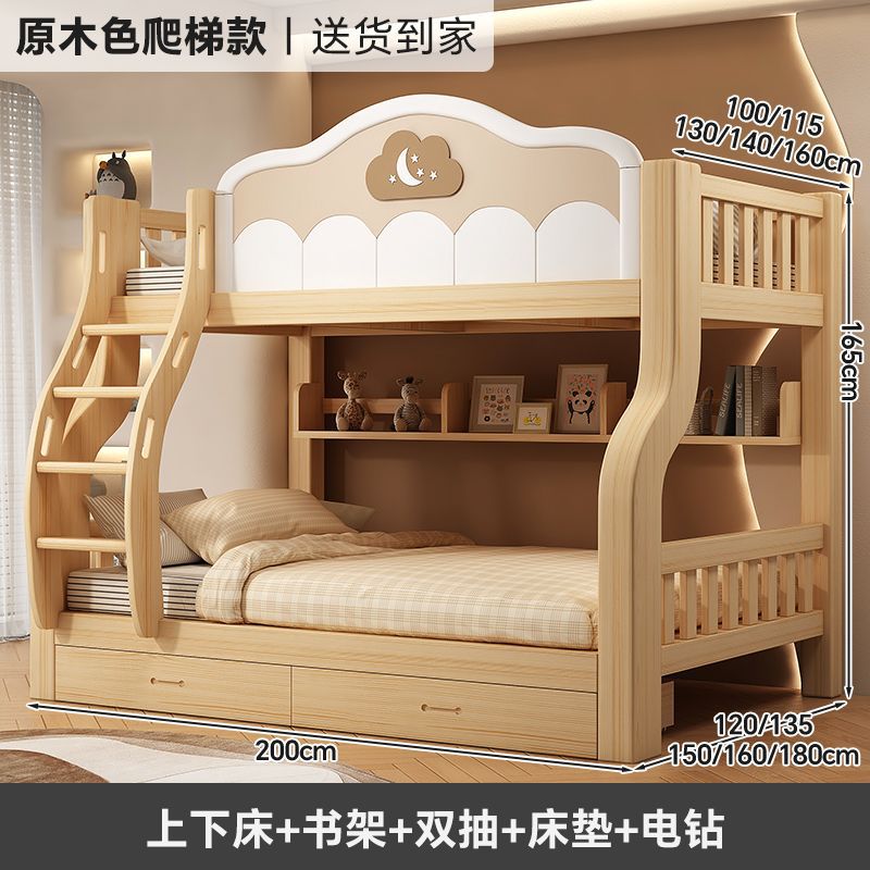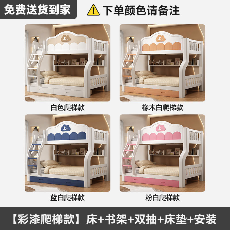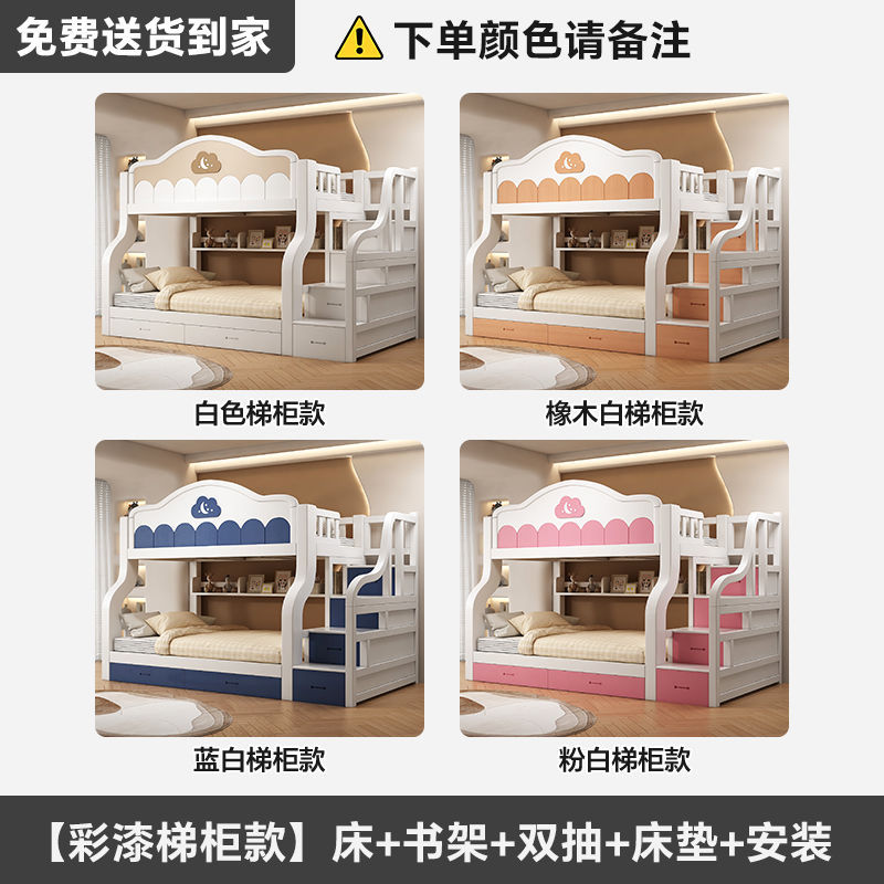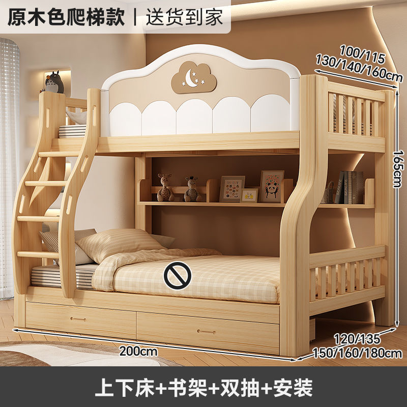 원목 이층침대, 다기능 어린이침대, 소형 이층침대, 두꺼운 성인용 높낮이 침대