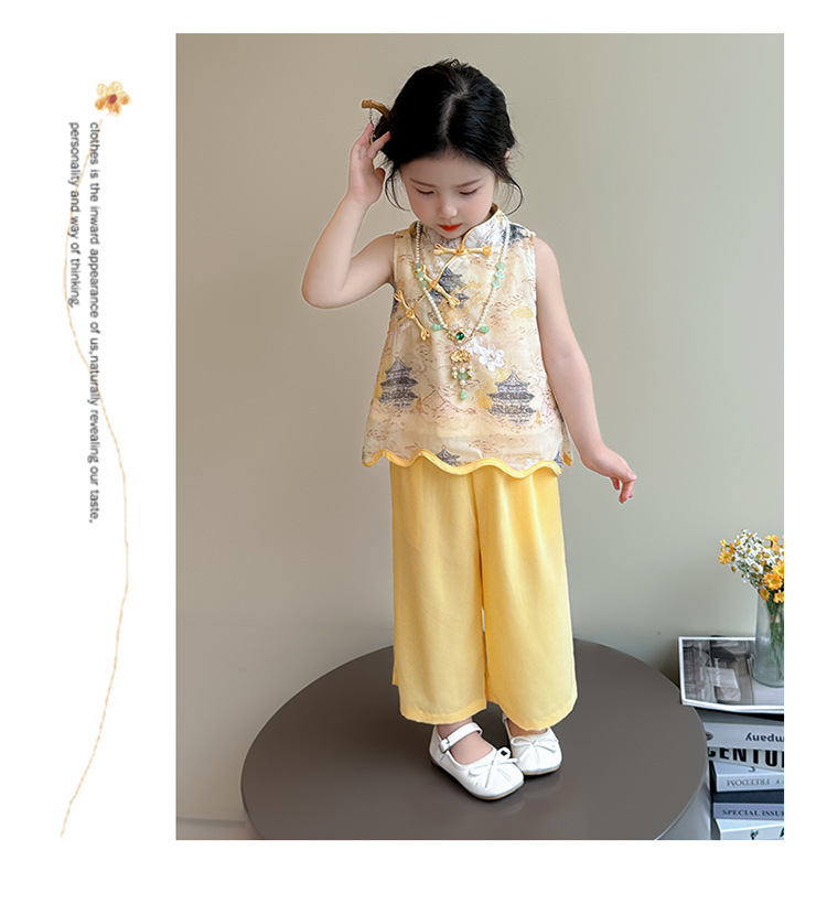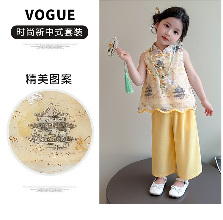 여자 여름 정장 2025 새로운 어린이 새로운 중국 스타일 얇은 민소매 옷 아기 소녀 여름 조끼 투피스 세트