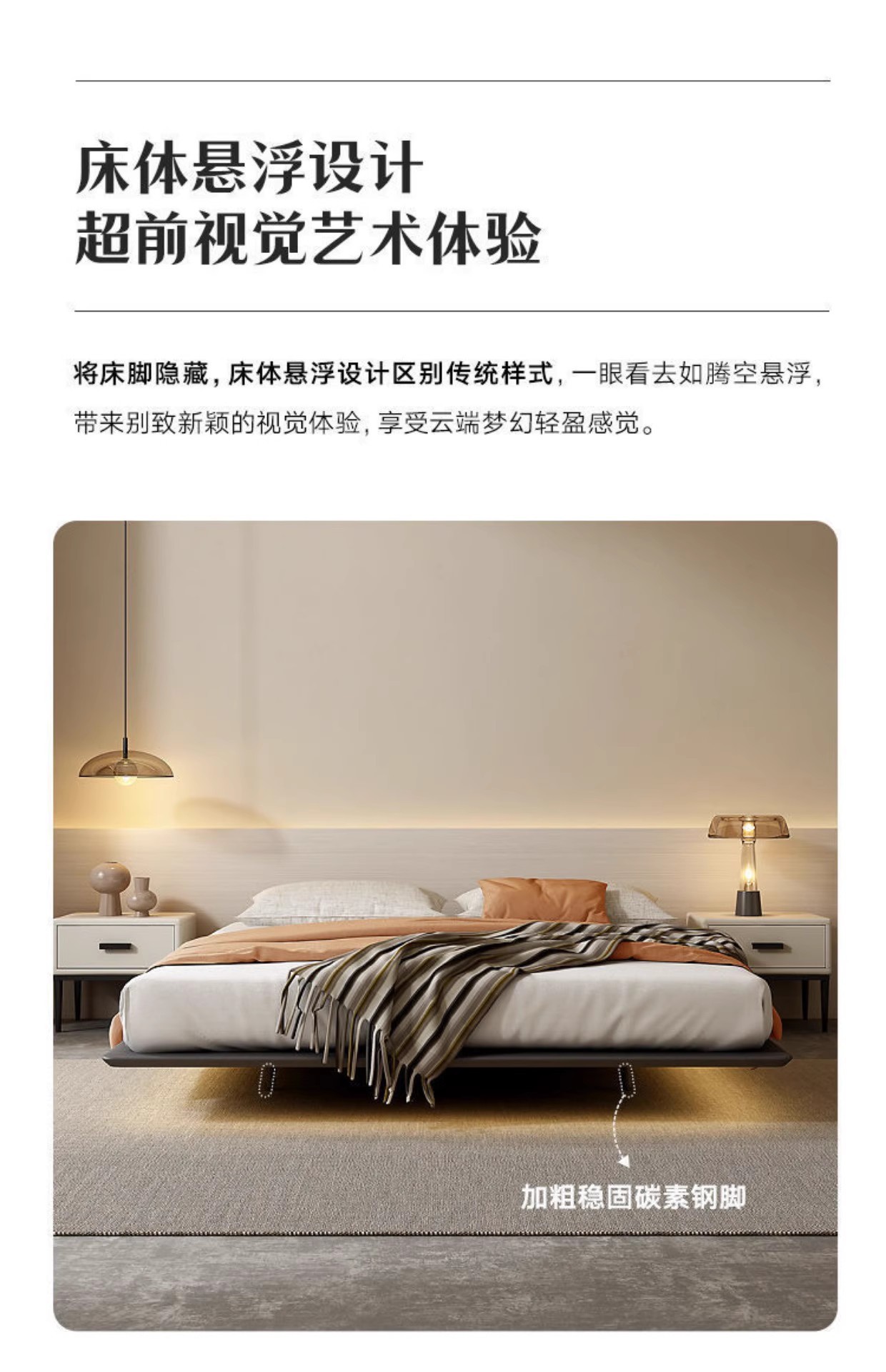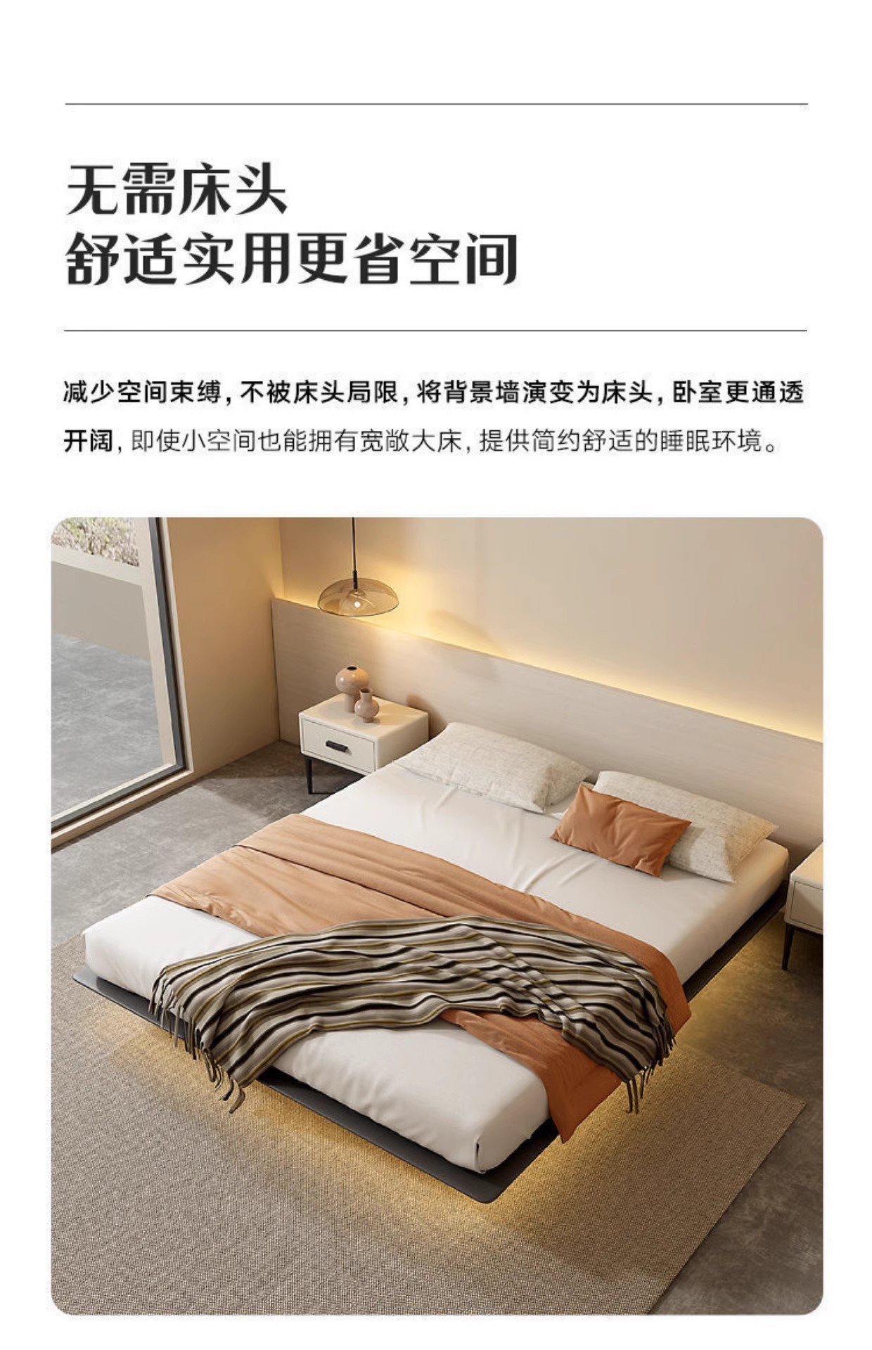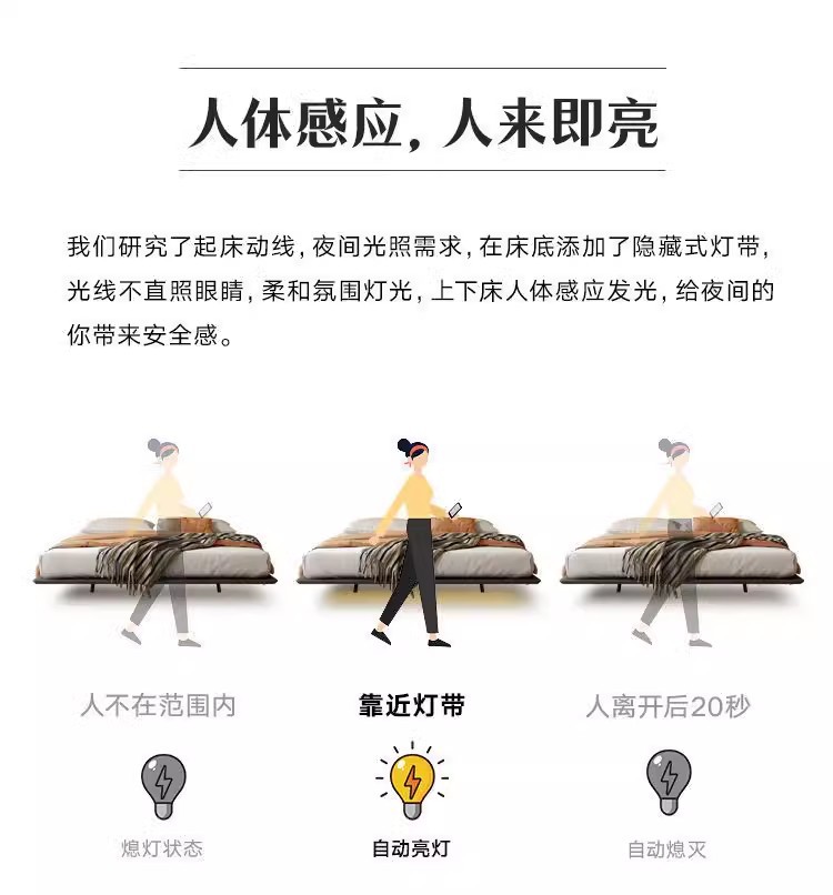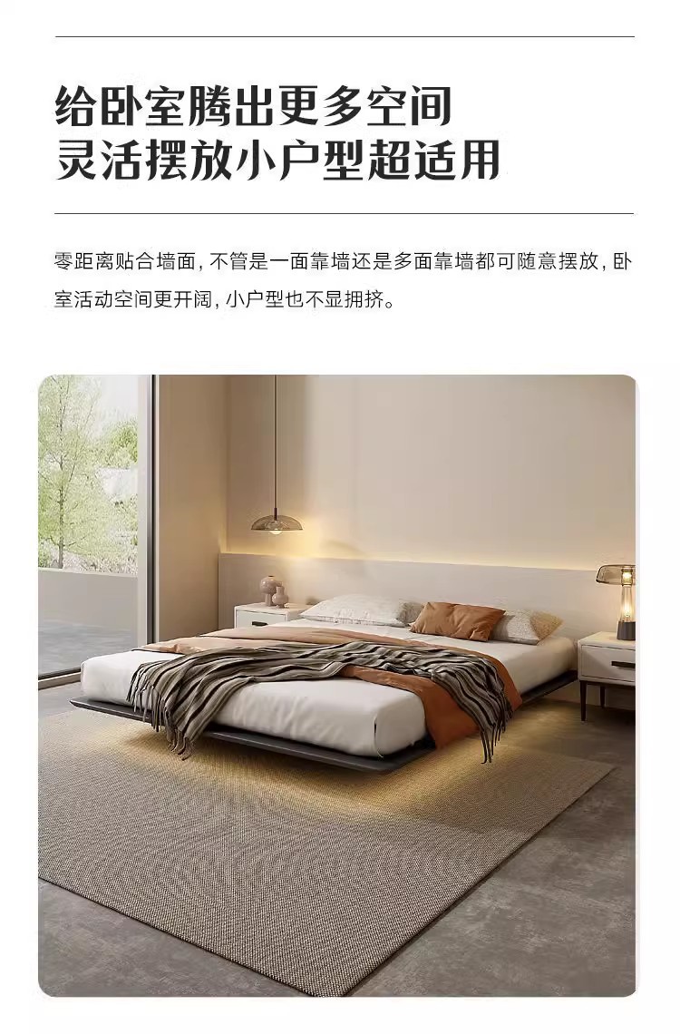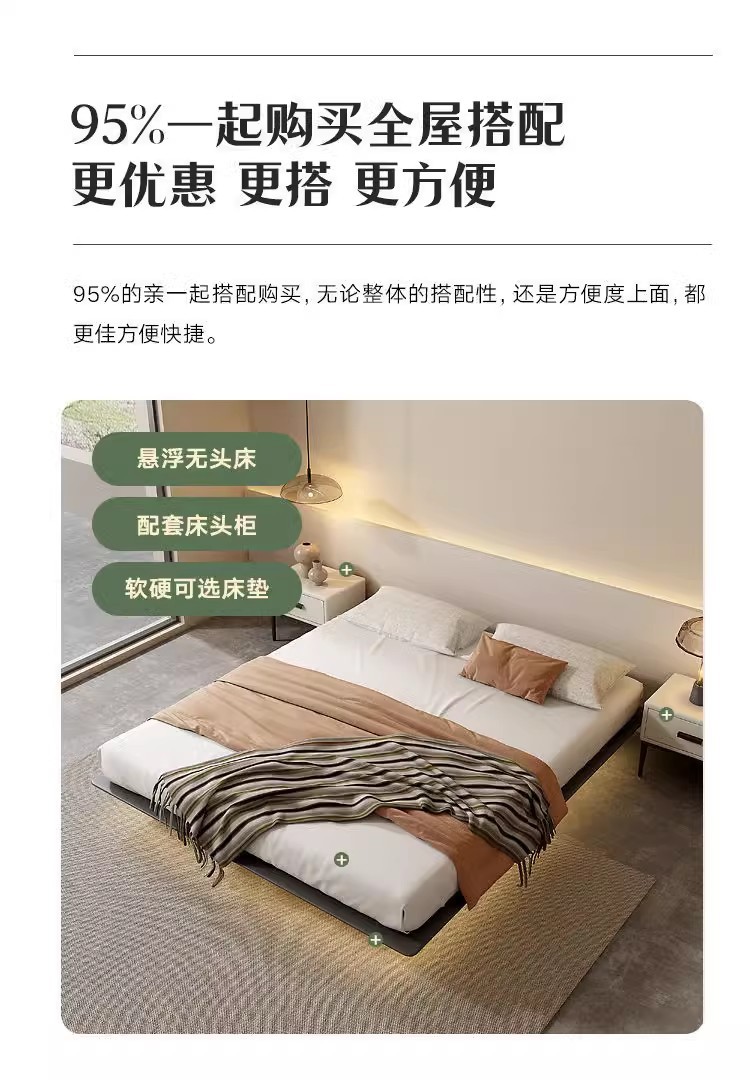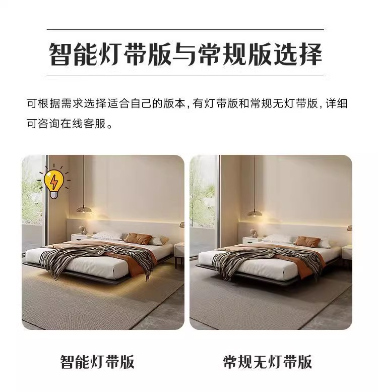 조명이 있는 미니멀리스트 공중 침대, 이탈리안 스타일, 침대 옆 없음, 등받이 없음, 원목, 인터넷 연예인 와비사비 스타일, 마스터 침실, 모던한 통나무 낮은 침대스토어 가기