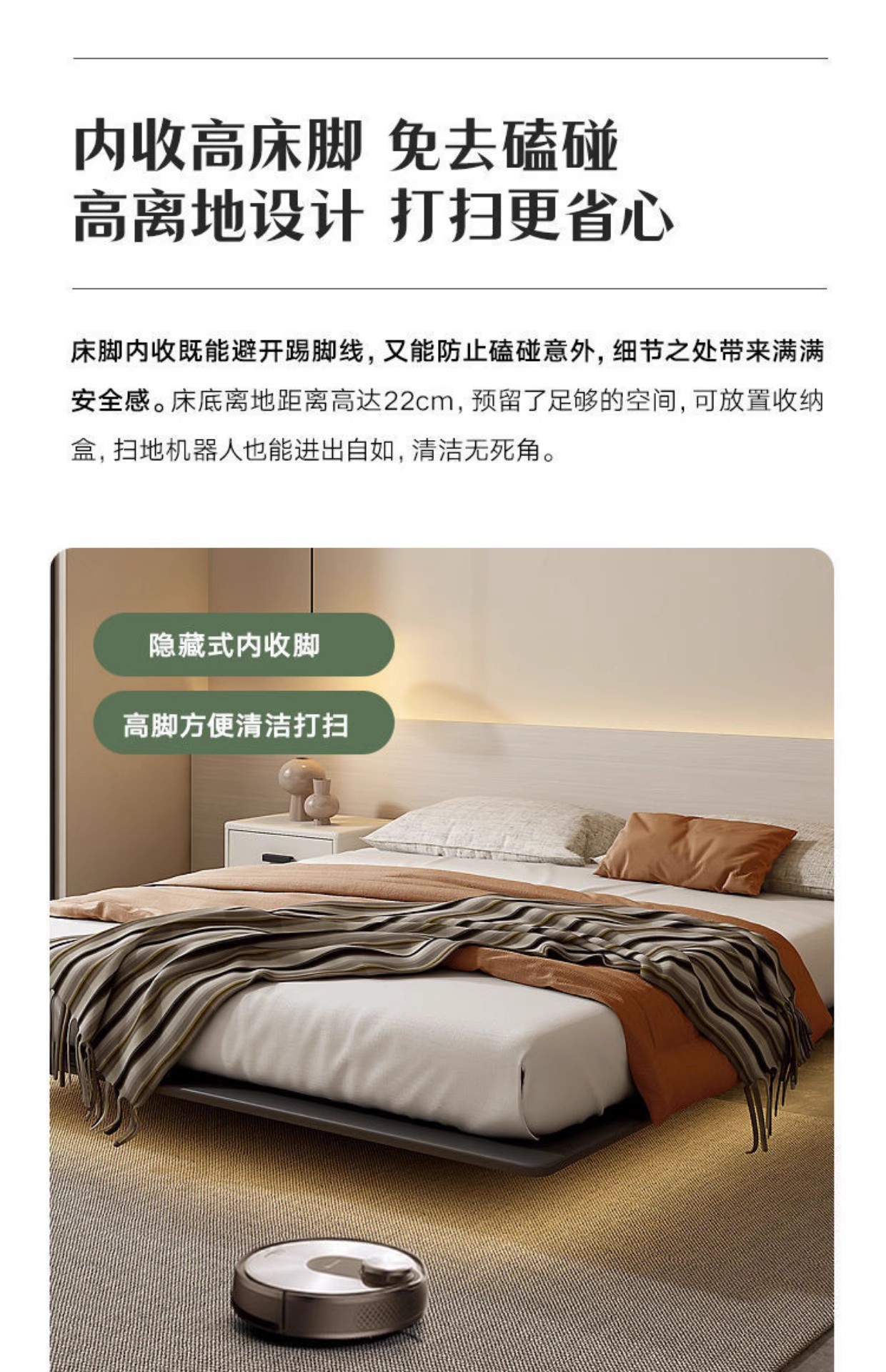 • 조명이 있는 침대 + 라텍스 매트리스 + 캐비닛 2개