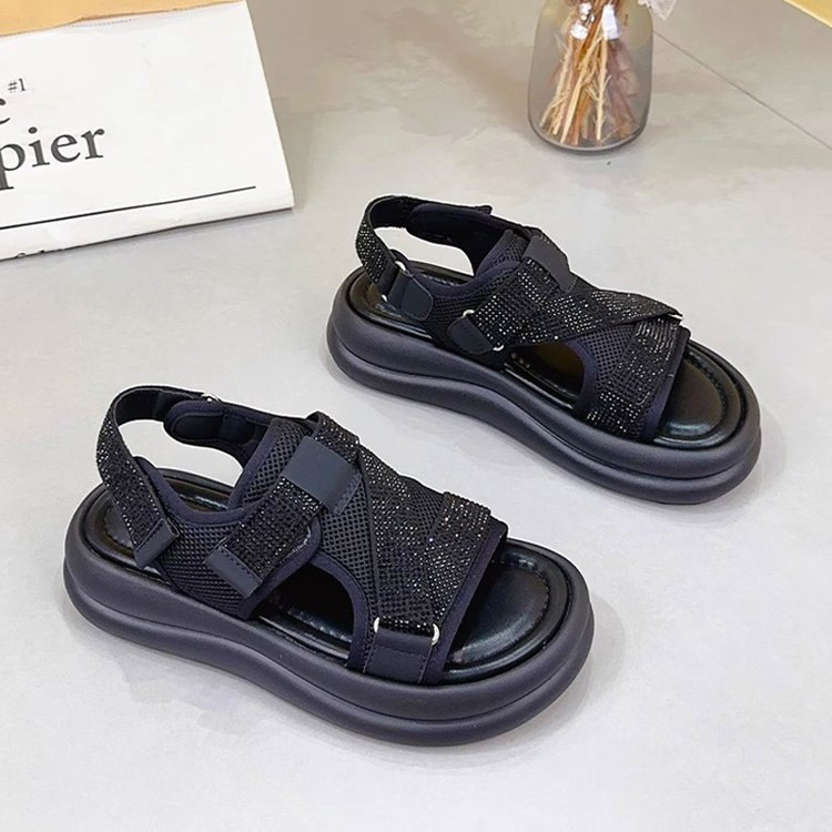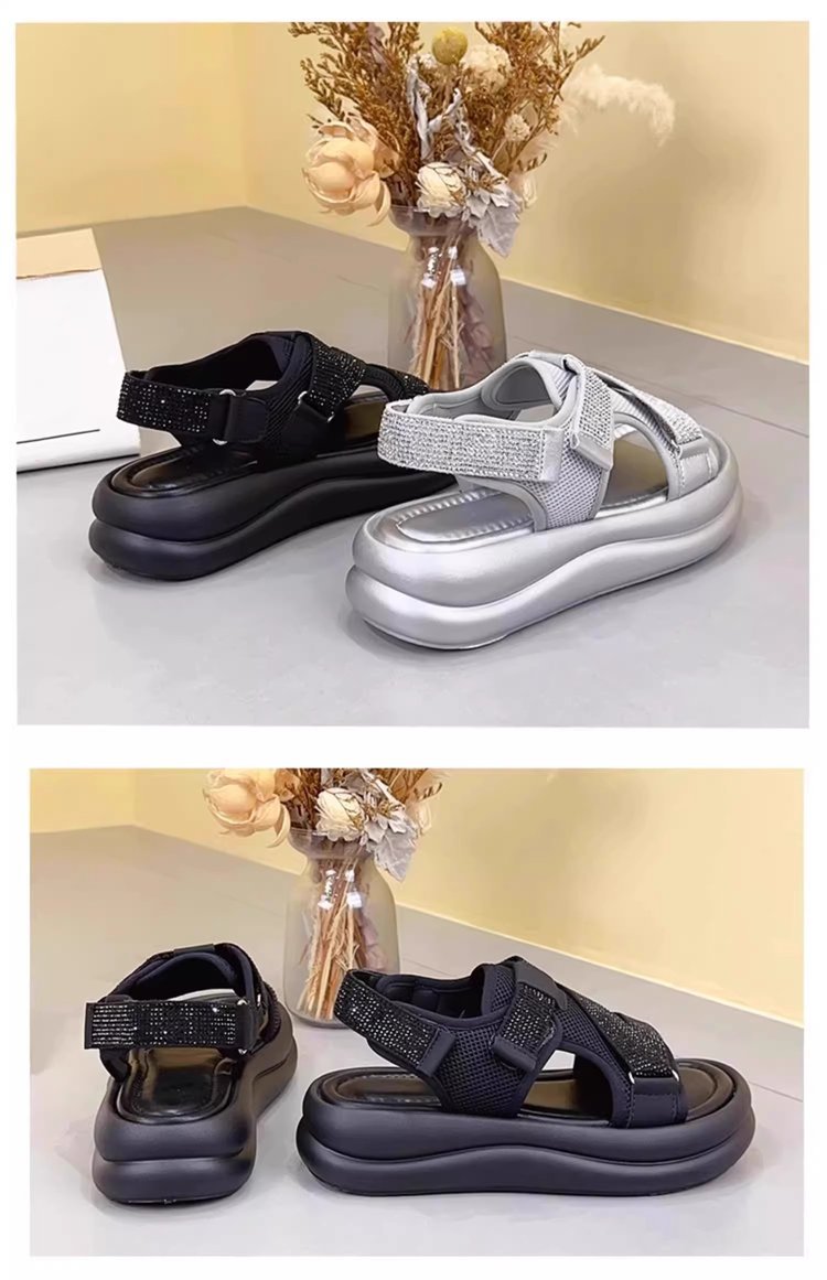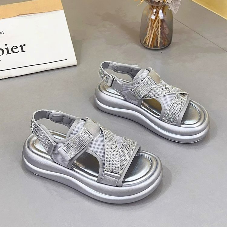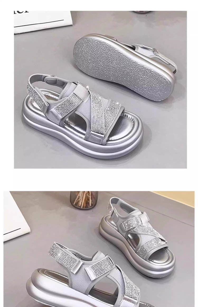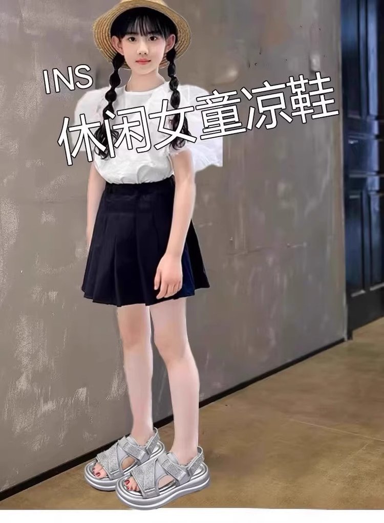 여자 샌들 2025 여름 새로운 어린이 패션 공주 샌들 부드러운 바닥 중형 및 대형 어린이 소녀 비치 샌들
