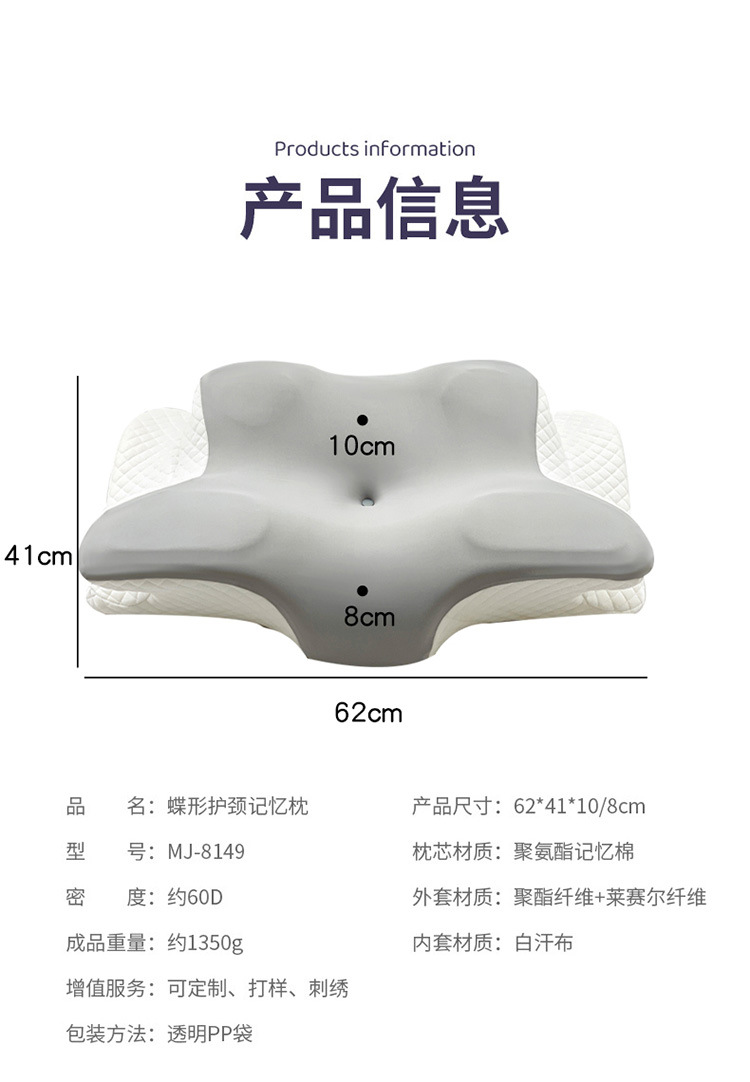 소뿔 모양 베개 남녀공용 메모리폼 베개 느린 반발 경추 보호 베개 가정용 나비형 베개 코어 제조업체 도매 통기성