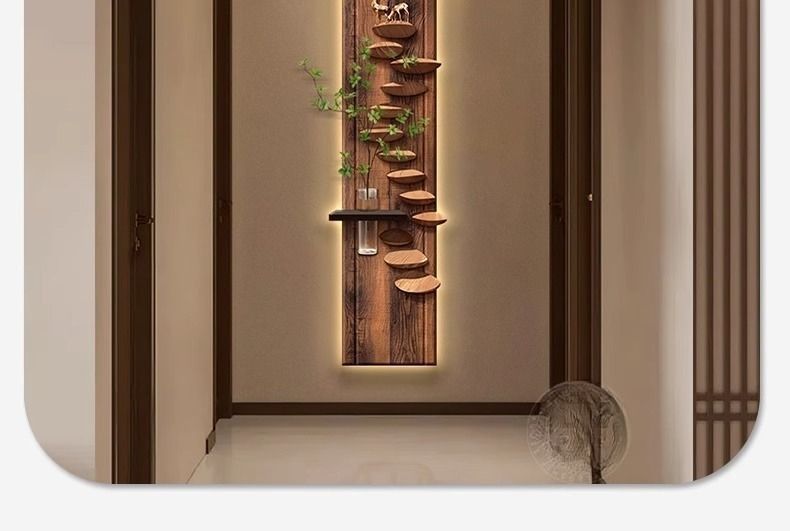 송나라 미학 거실 TV 배경 벽 장식 그림 수경 녹색 식물 입구 문 교수형 그림 벽 램프 중세 스타일스토어 가기
