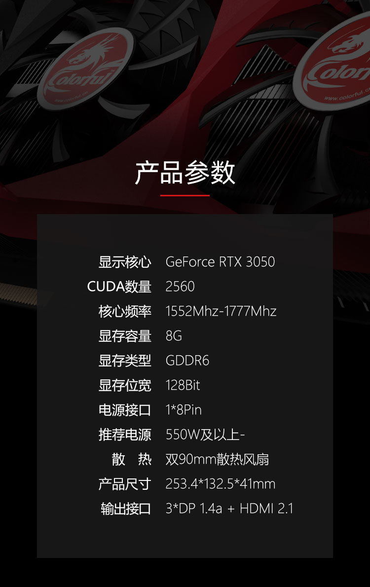 e스포츠 게임 및 사무실 독립 그래픽 카드에 적합한 다채로운 Tomahawk GeForce RTX3050 DUO 8G스토어 가기