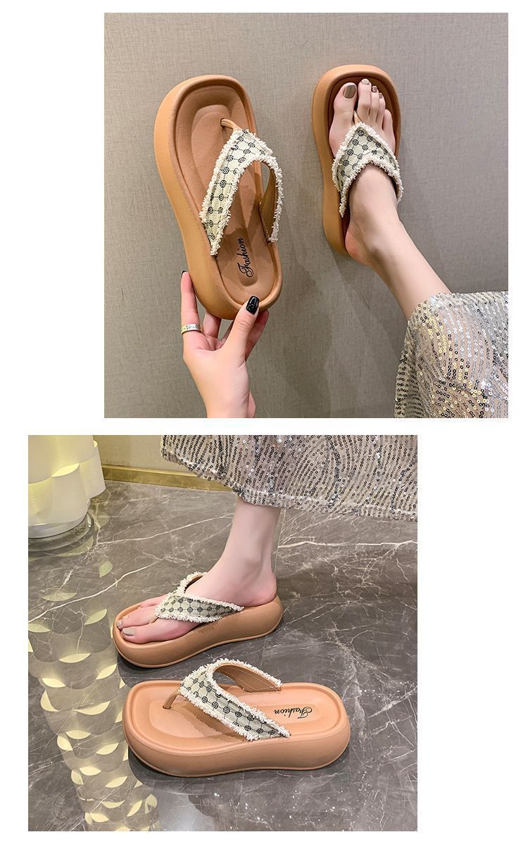 캐주얼 비치 슬리퍼, 패셔너블하고 다재다능한 두꺼운 밑창 플립플롭, 여성용 2025 여름 및 가을 신작 플립플롭스토어 가기