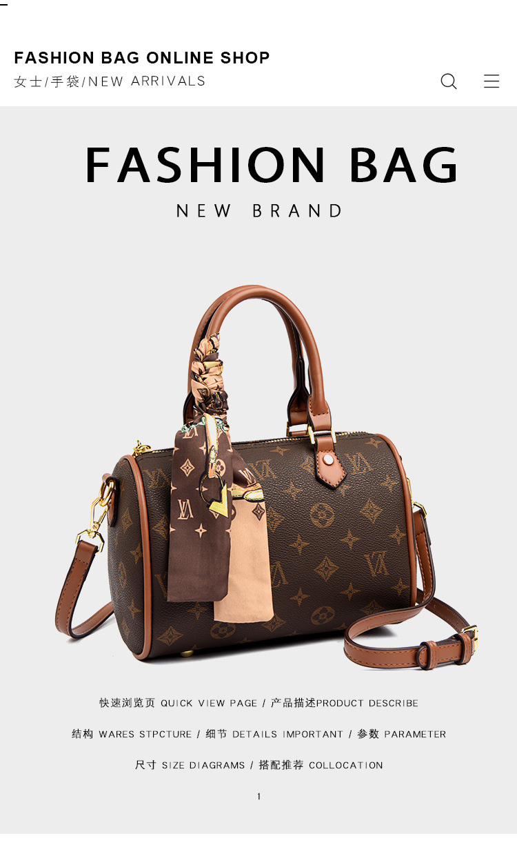 2025 새로운 패션과 고급 여성 가방 여성 유럽과 미국의 복고풍 보스턴 스타일 다용도 어깨 크로스 바디 백스토어 가기