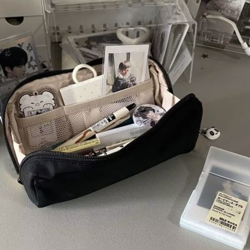 Xiaohongshu 다크 나이트 블랙 소프트 푸푸 펜 가방 간단하고 얼룩 방지 기능이 뛰어난 고급스러운 대용량 문구 보관 가방 무료 배송