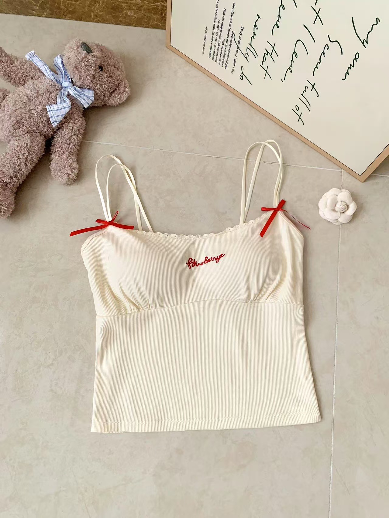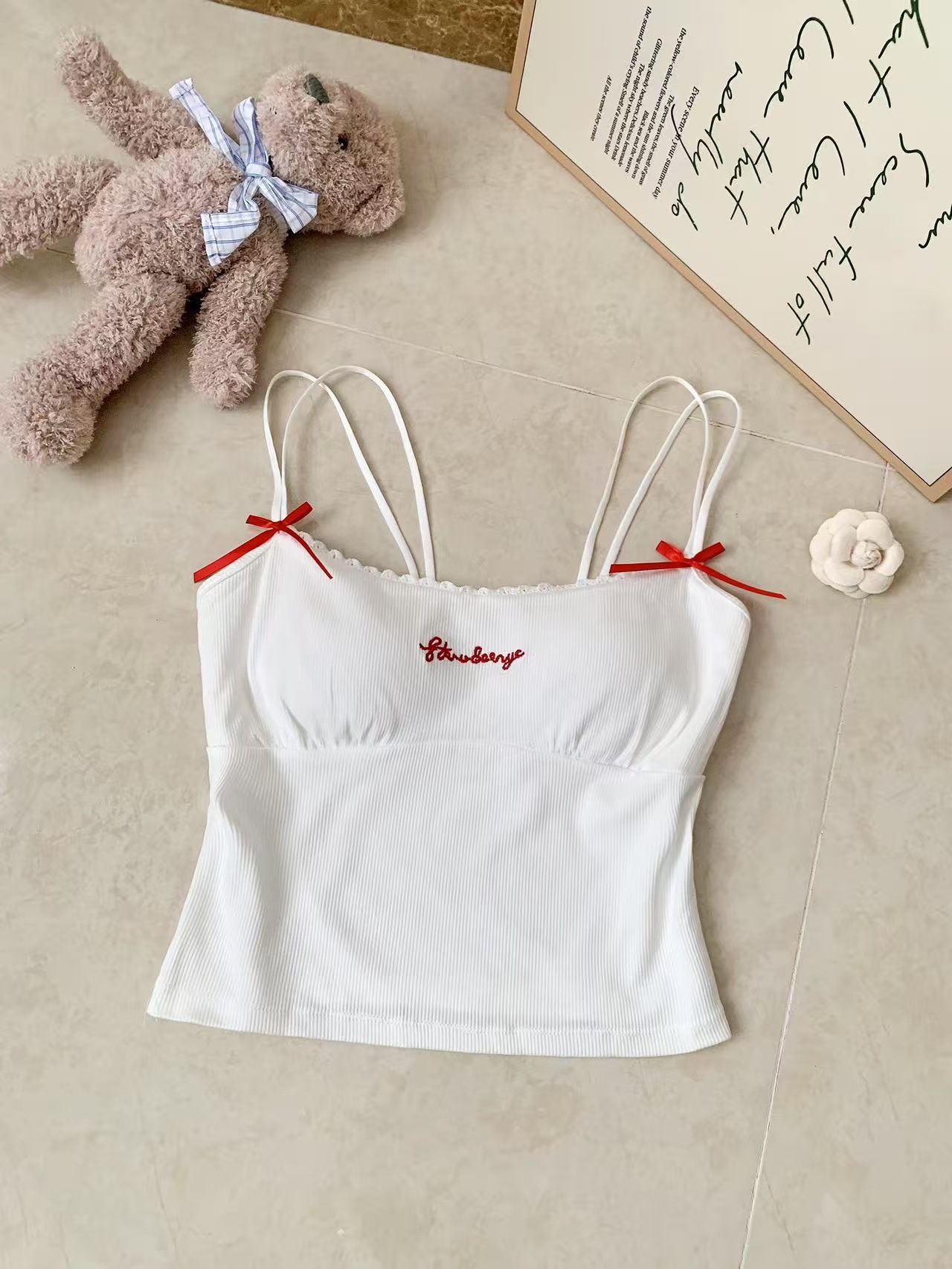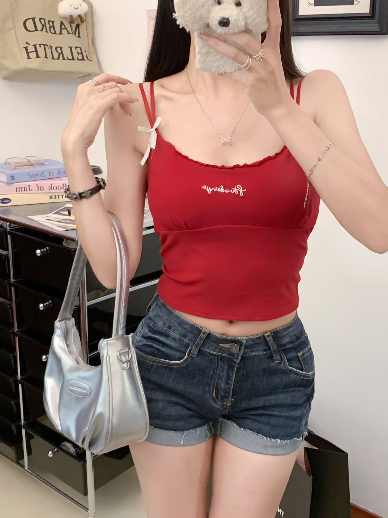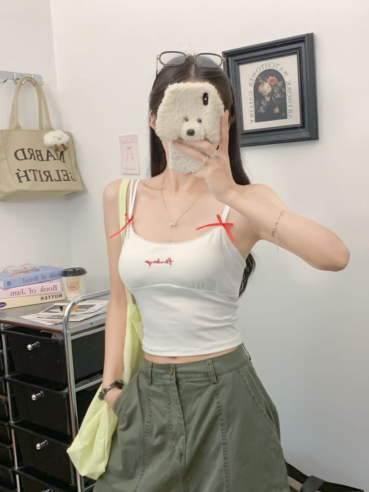 Pure Desire Hot Girl 자수 더블 숄더 스트랩 캐미솔 여성용 가슴 패드 포함, 슬림핏 아름다운 등 베이스 탑 여성용스토어 가기