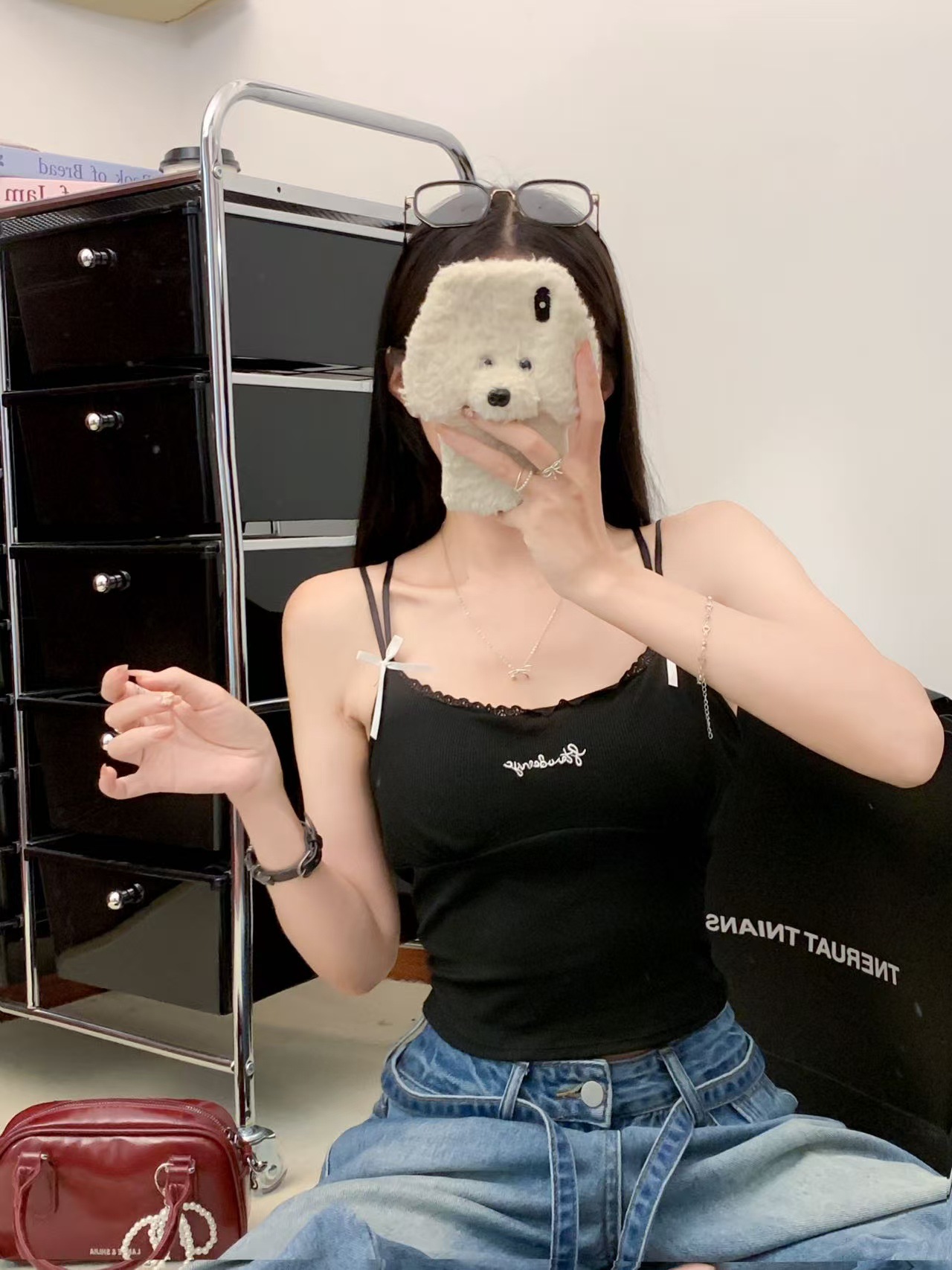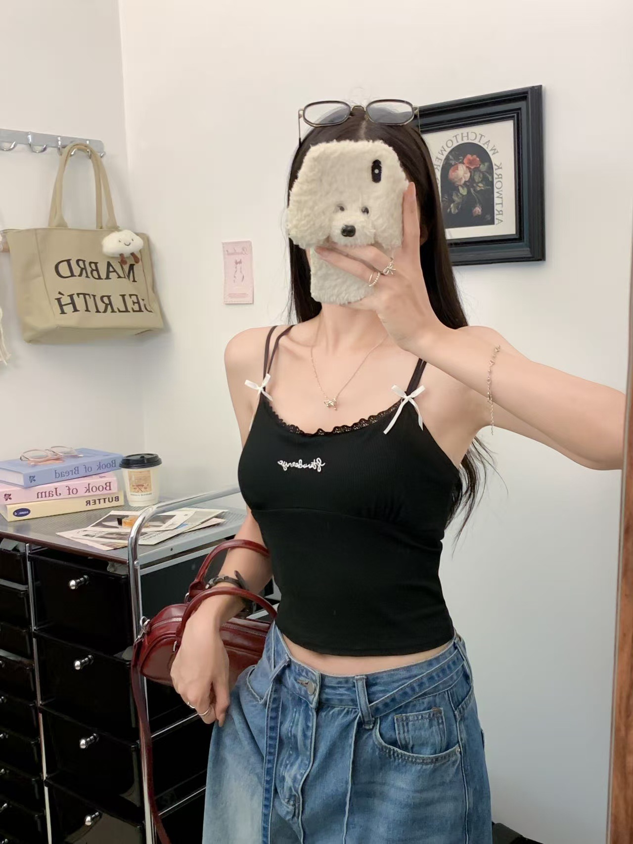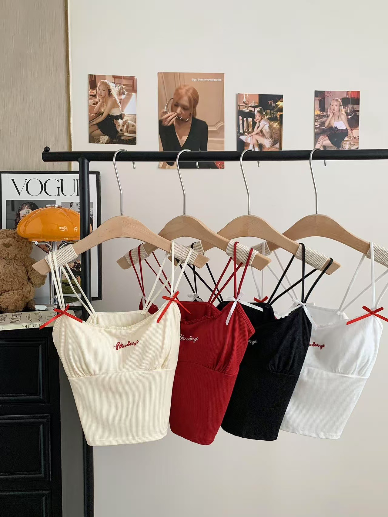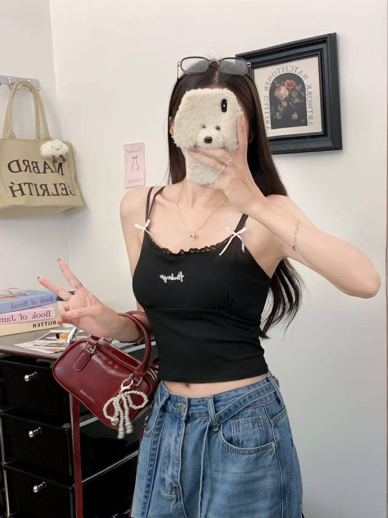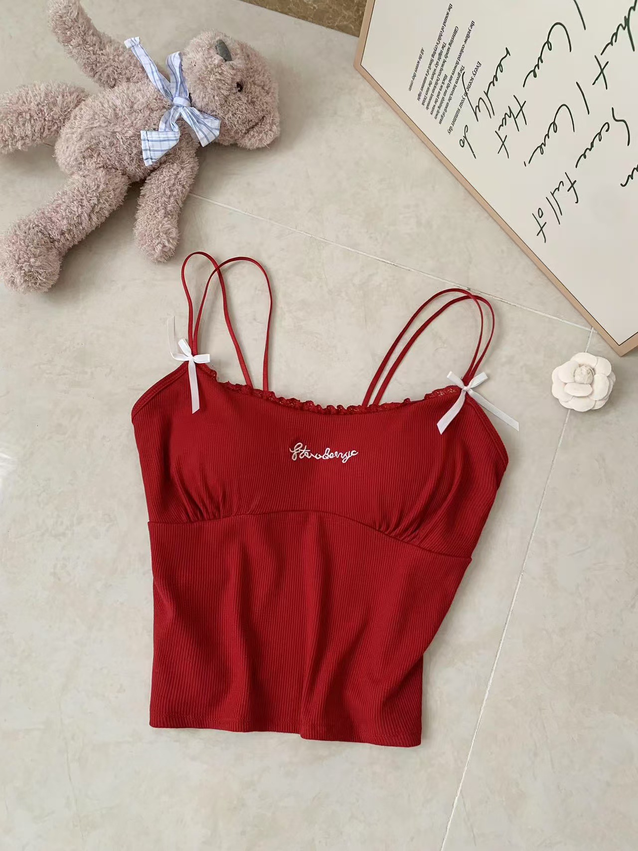 Pure Desire Hot Girl 자수 더블 숄더 스트랩 캐미솔 여성용 가슴 패드 포함, 슬림핏 아름다운 등 베이스 탑 여성용스토어 가기