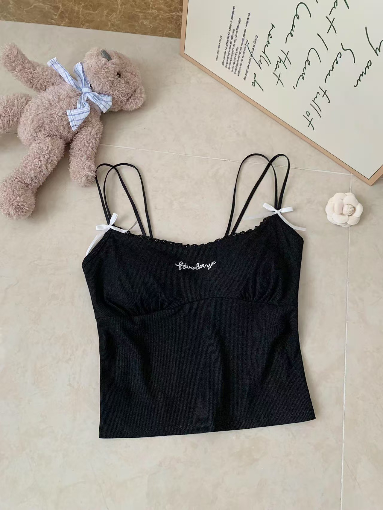 Pure Desire Hot Girl 자수 더블 숄더 스트랩 캐미솔 여성용 가슴 패드 포함, 슬림핏 아름다운 등 베이스 탑 여성용