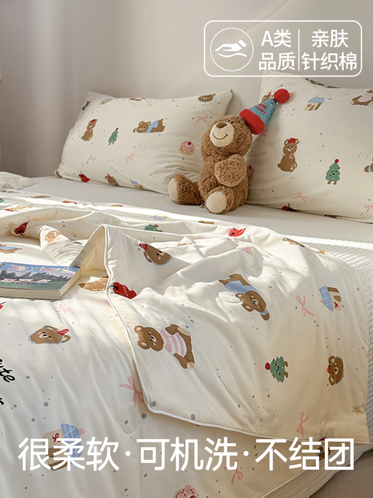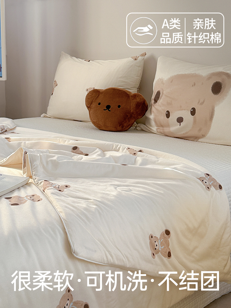 • A급 니트 면 여름 이불 - 밀크티 베어