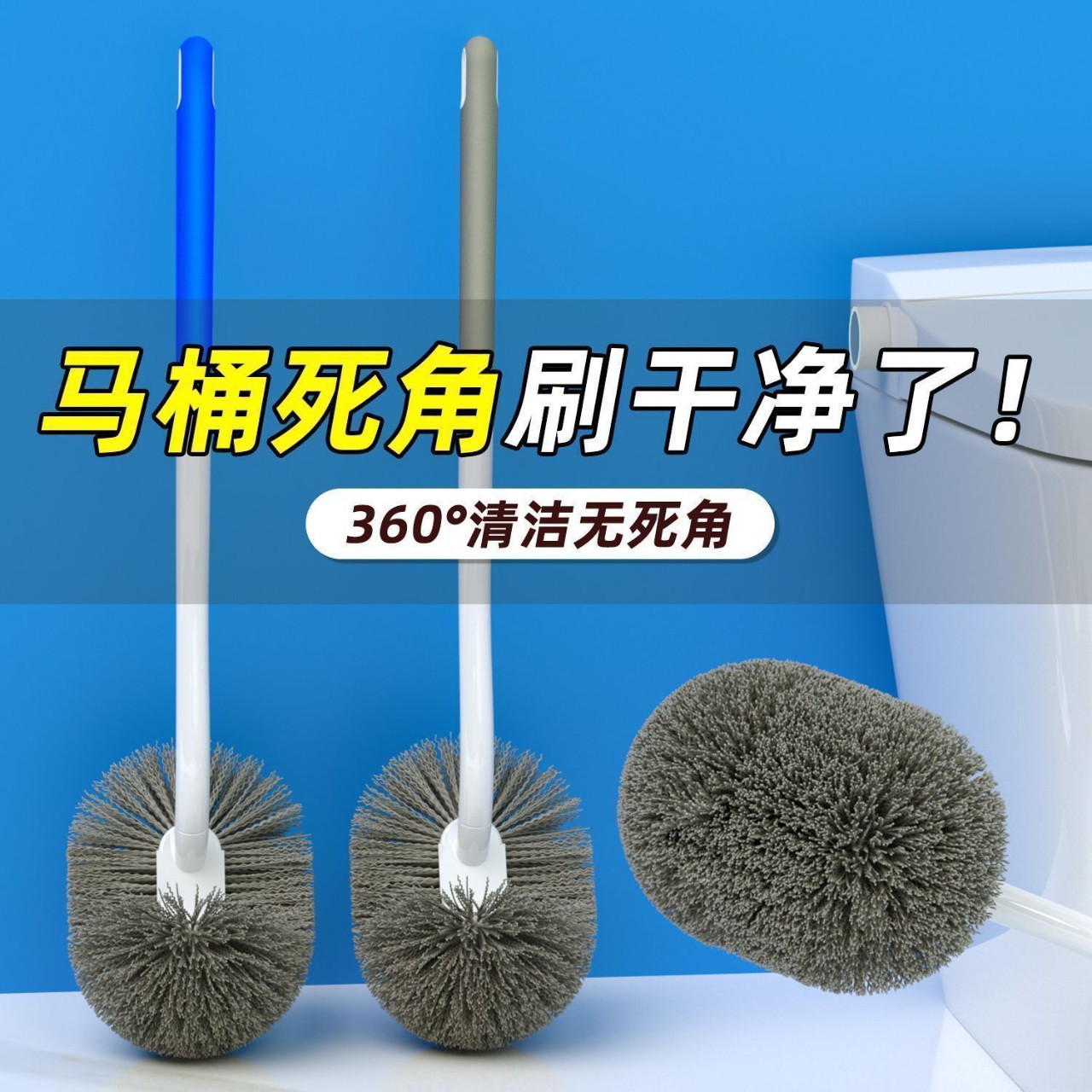 접착 처리된 가정용 사각지대 없는 변기 브러시, 부드러운 강모, 긴 손잡이, 변기 브러시, 청소 브러시, 벽걸이형 욕실스토어 가기