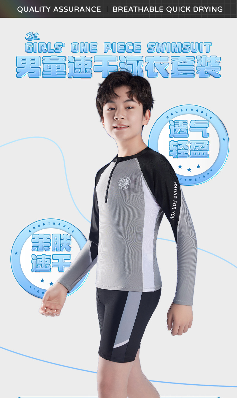 아동용 스플릿 수영복 긴팔 중대형 아동 및 청소년 수영복 투피스 세트 2025 큰 소년을 위한 새로운 수영 장비