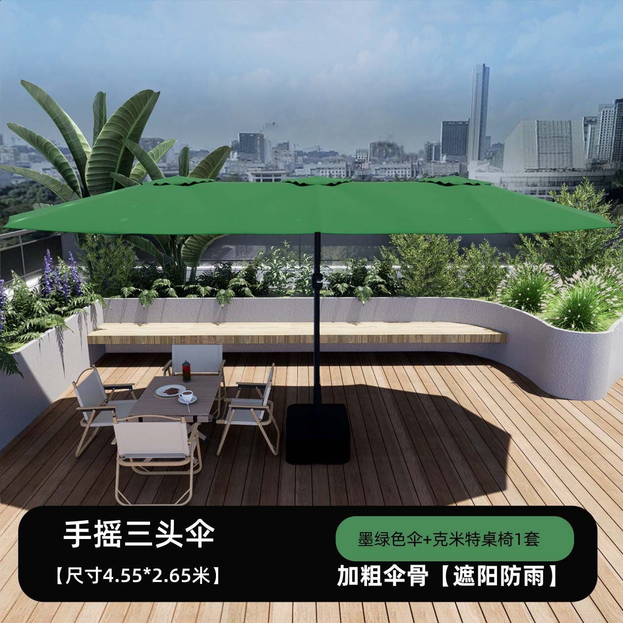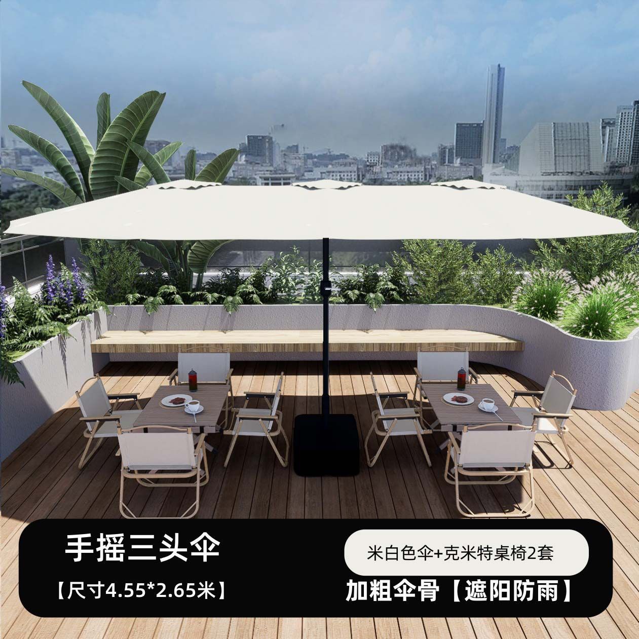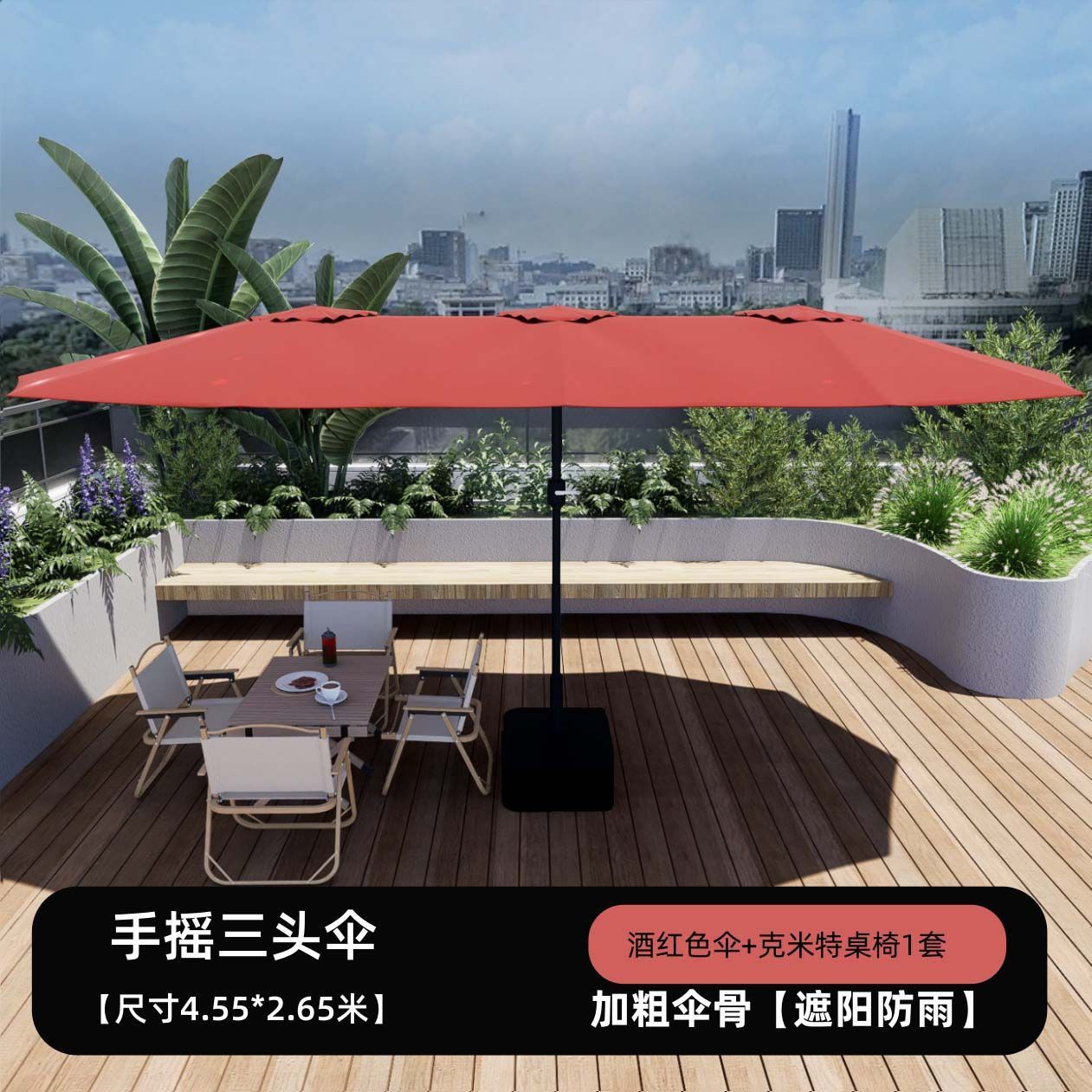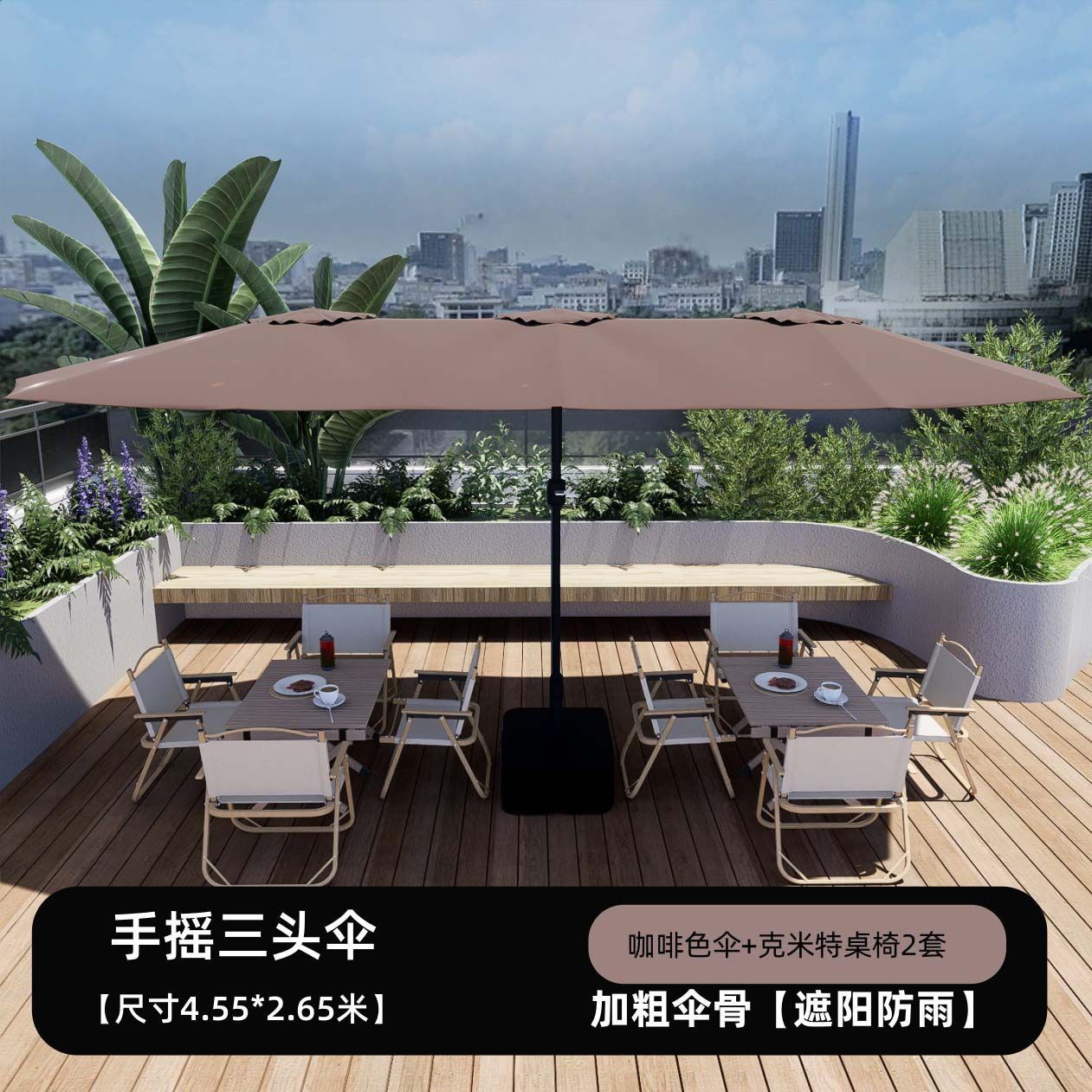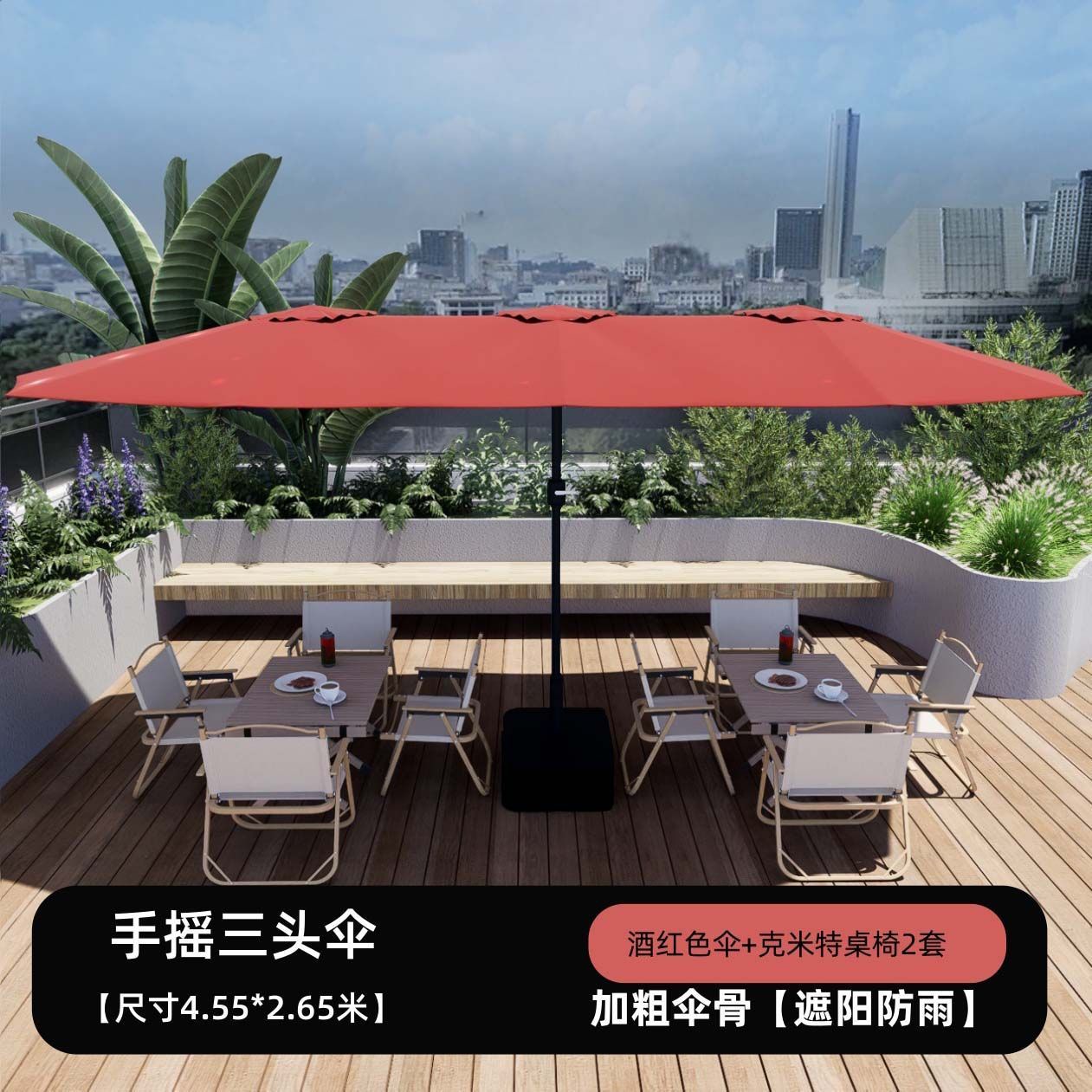 야외 상업용 대형 태양 우산, 야외 카페 테라스 우산, 인터넷 연예인 스톨 우산, 3헤드 중간 기둥 우산, 안뜰 차양스토어 가기