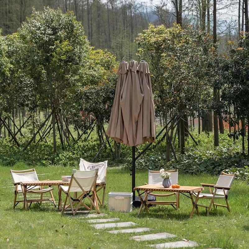 • 캠핑 테이블과 의자가 있는 미색