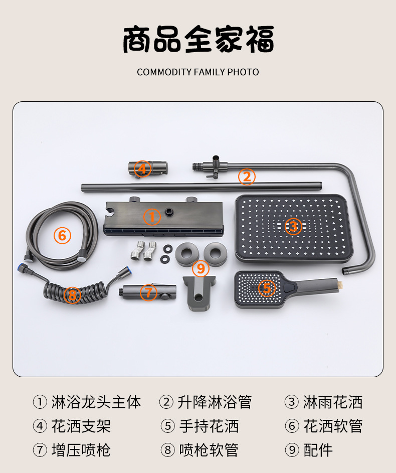 건 그레이 욕실 샤워 세트 샤워 가정용 욕실 화장실 가압 샤워기 샤워 레인 샤워 노즐