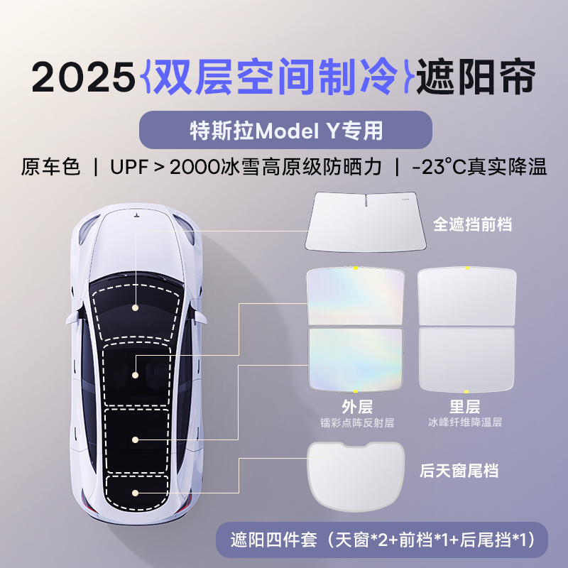 • [모델Y 선루프] 오리지널 카 컬러 ★ 공간 냉각 진정한 이중층