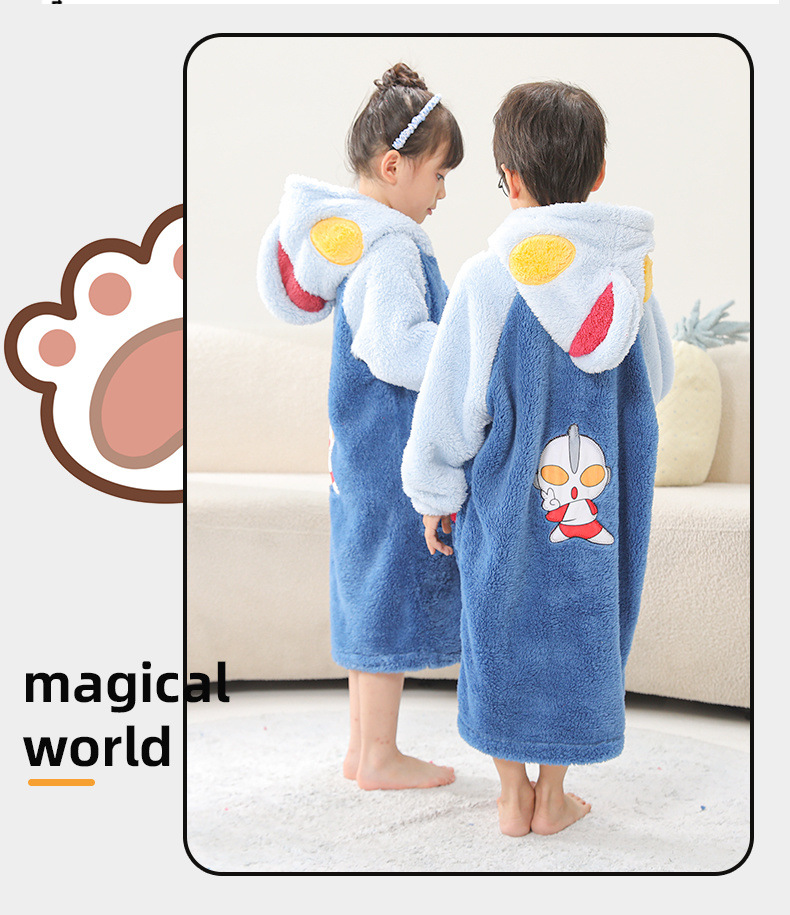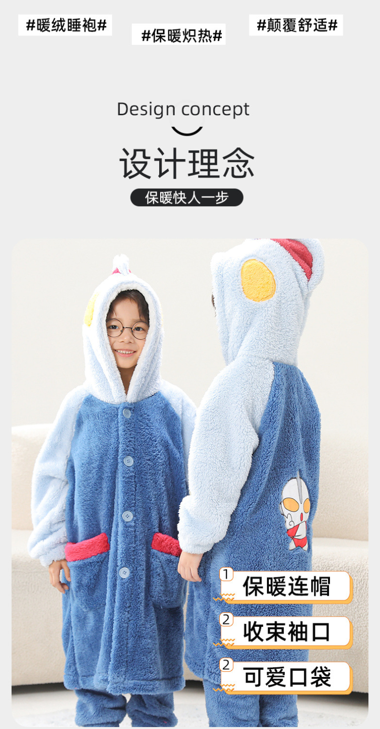 어린이 두꺼운 잠옷 울트라 맨 목욕 가운 봄과 가을 플란넬 확장 아기 소년과 소녀 만화 잠옷