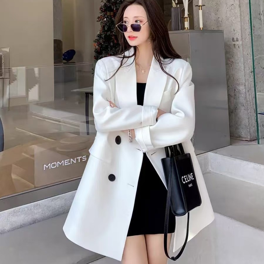 여성을위한 흰색 정장 재킷 2025 봄, 가을 새로운 한국 스타일 느슨한 캐주얼 기질 여성을위한 더블 브레스트 정장 탑스토어 가기