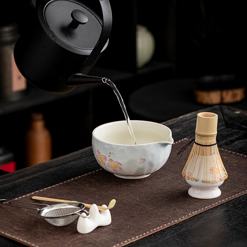 국경을 넘나드는 일본 말차 그릇, 입이 있는 손으로 그린 벚꽃 말차 그릇, 100개의 말차 세트, 말차 액세서리스토어 가기