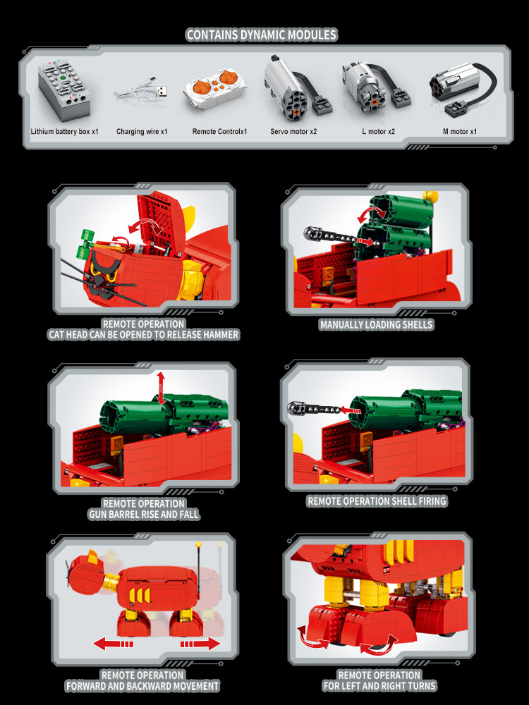 작은 각도 JD049 원격 제어 로봇 고양이 애완 동물과 쥐 기계 고양이 플러그인 빌딩 블록 모델 대형 장난감