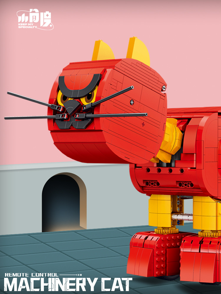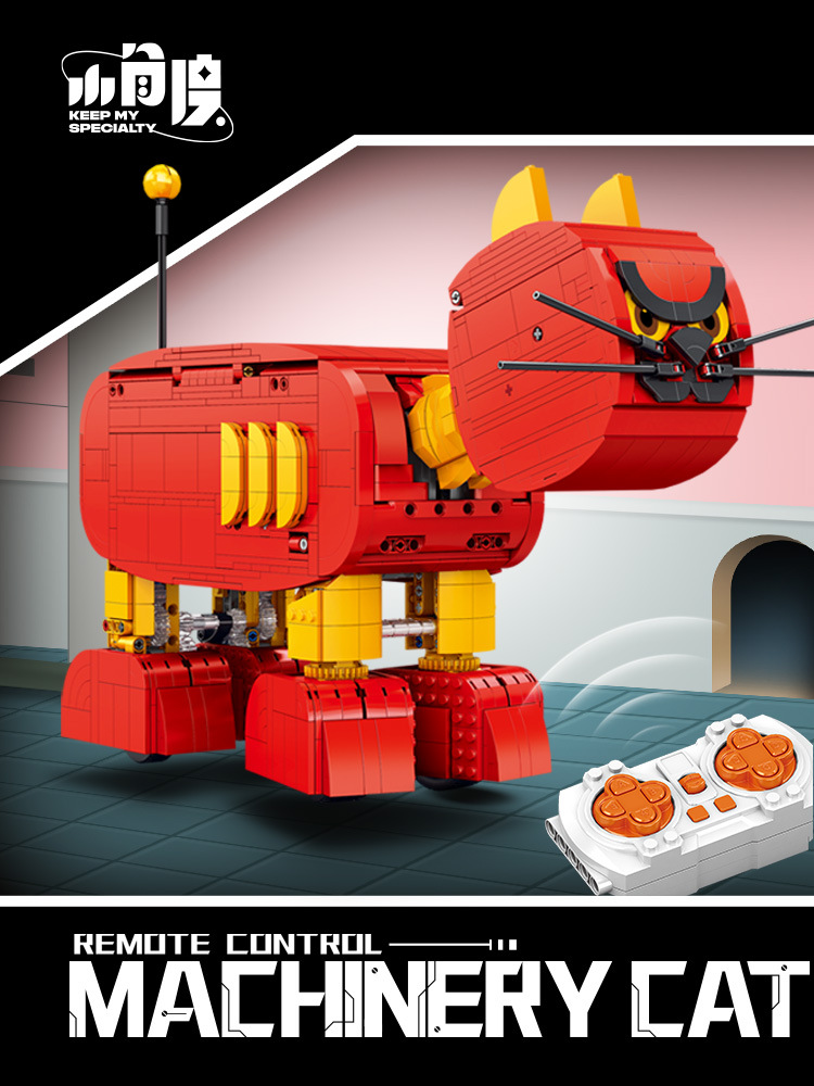 작은 각도 JD049 원격 제어 로봇 고양이 애완 동물과 쥐 기계 고양이 플러그인 빌딩 블록 모델 대형 장난감스토어 가기