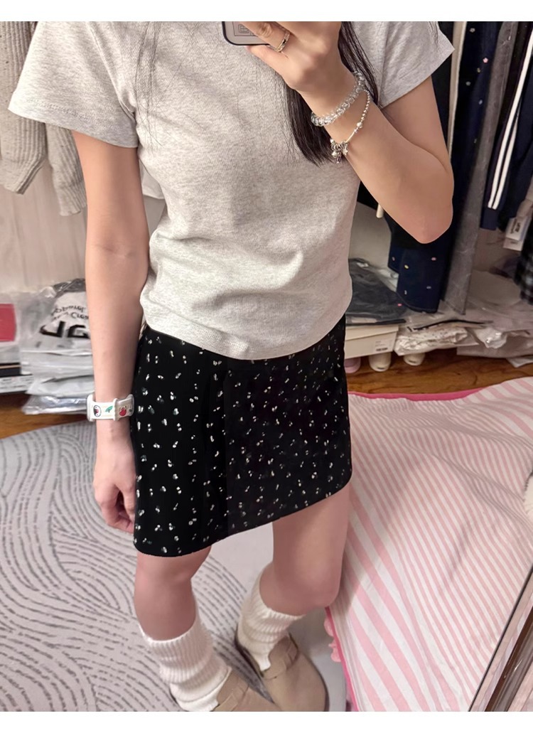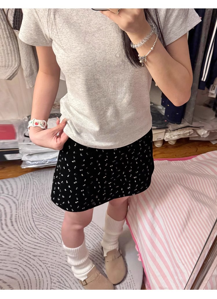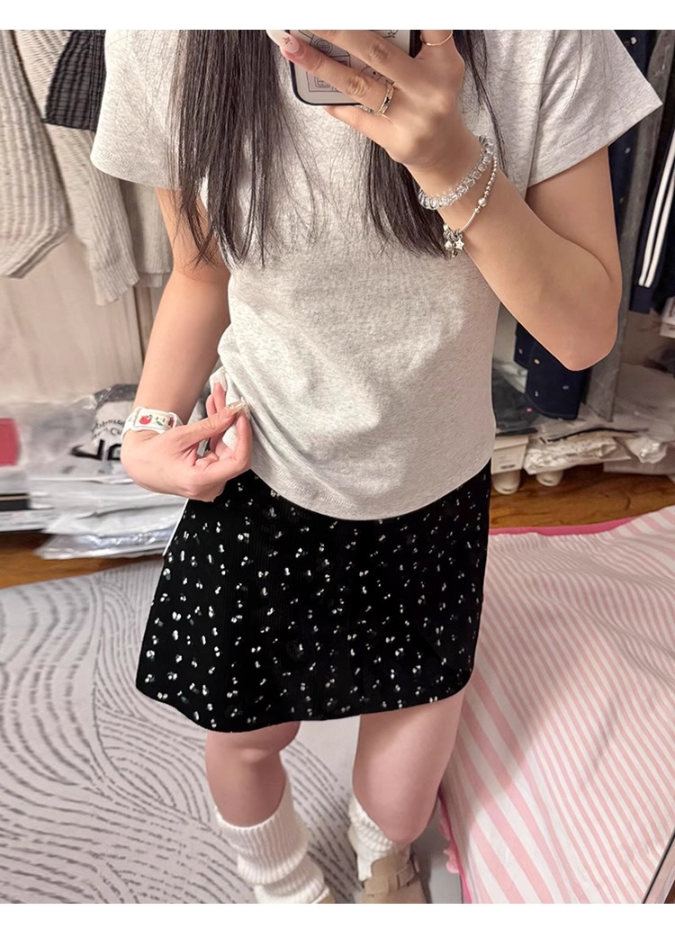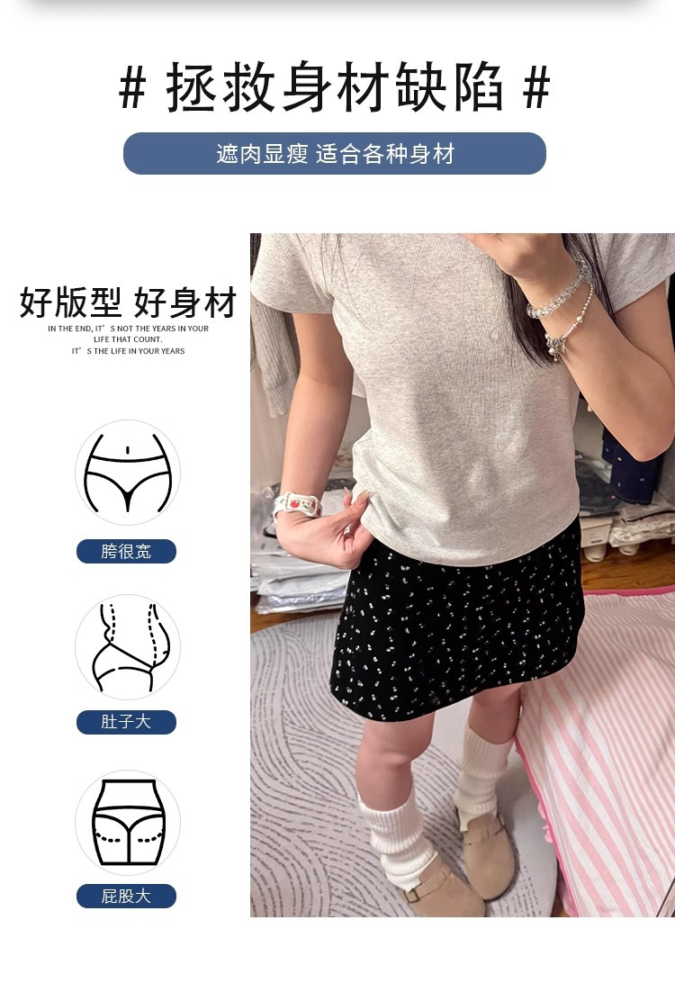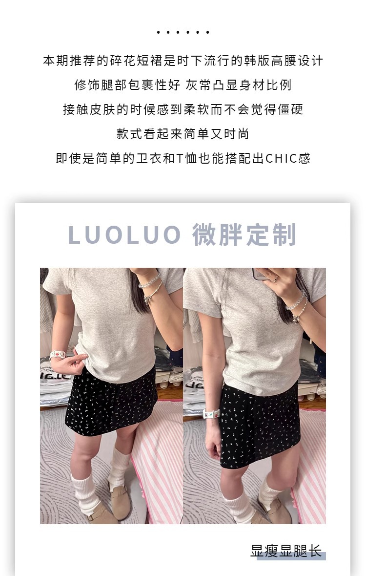 블랙 캐주얼 플로럴 숏 스커트 여성용 배를 가려주는 슬림핏 배형 체형 A라인 스커트 동남아 스타일스토어 가기