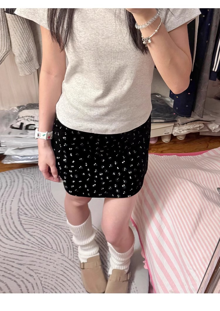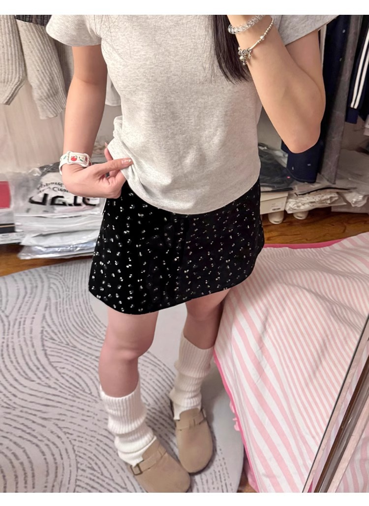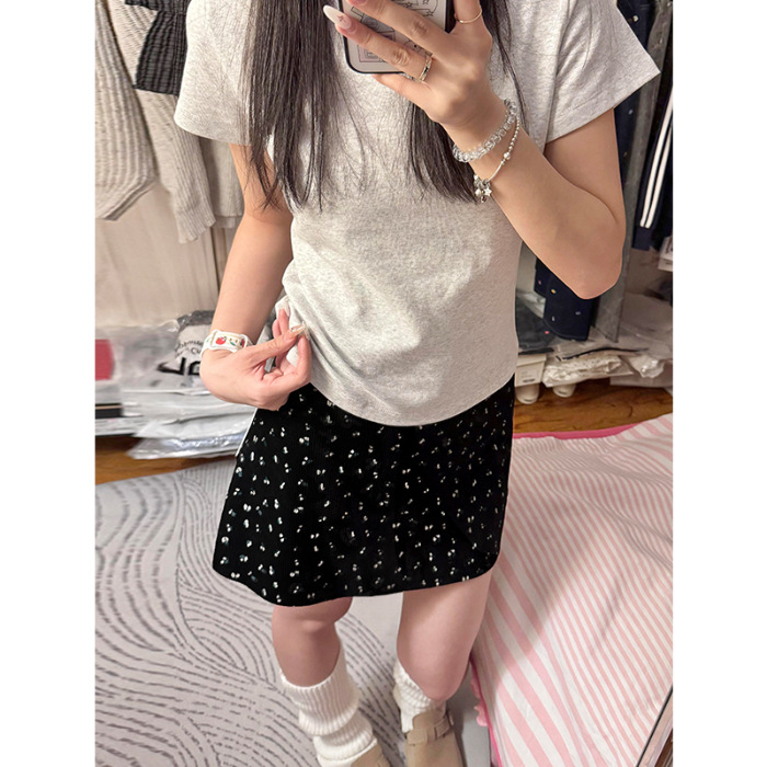 블랙 캐주얼 플로럴 숏 스커트 여성용 배를 가려주는 슬림핏 배형 체형 A라인 스커트 동남아 스타일