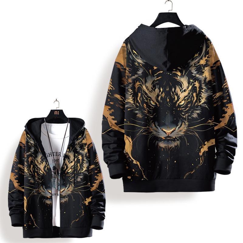 2025 국경 간 인기 후드 티셔츠 지퍼 타이거 헤드 3D 디지털 프린트 스웨트 남성 카디건 후드 자켓