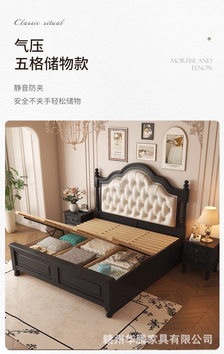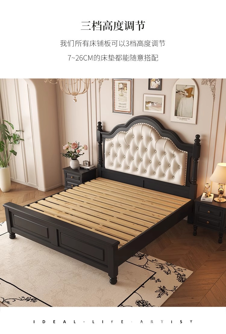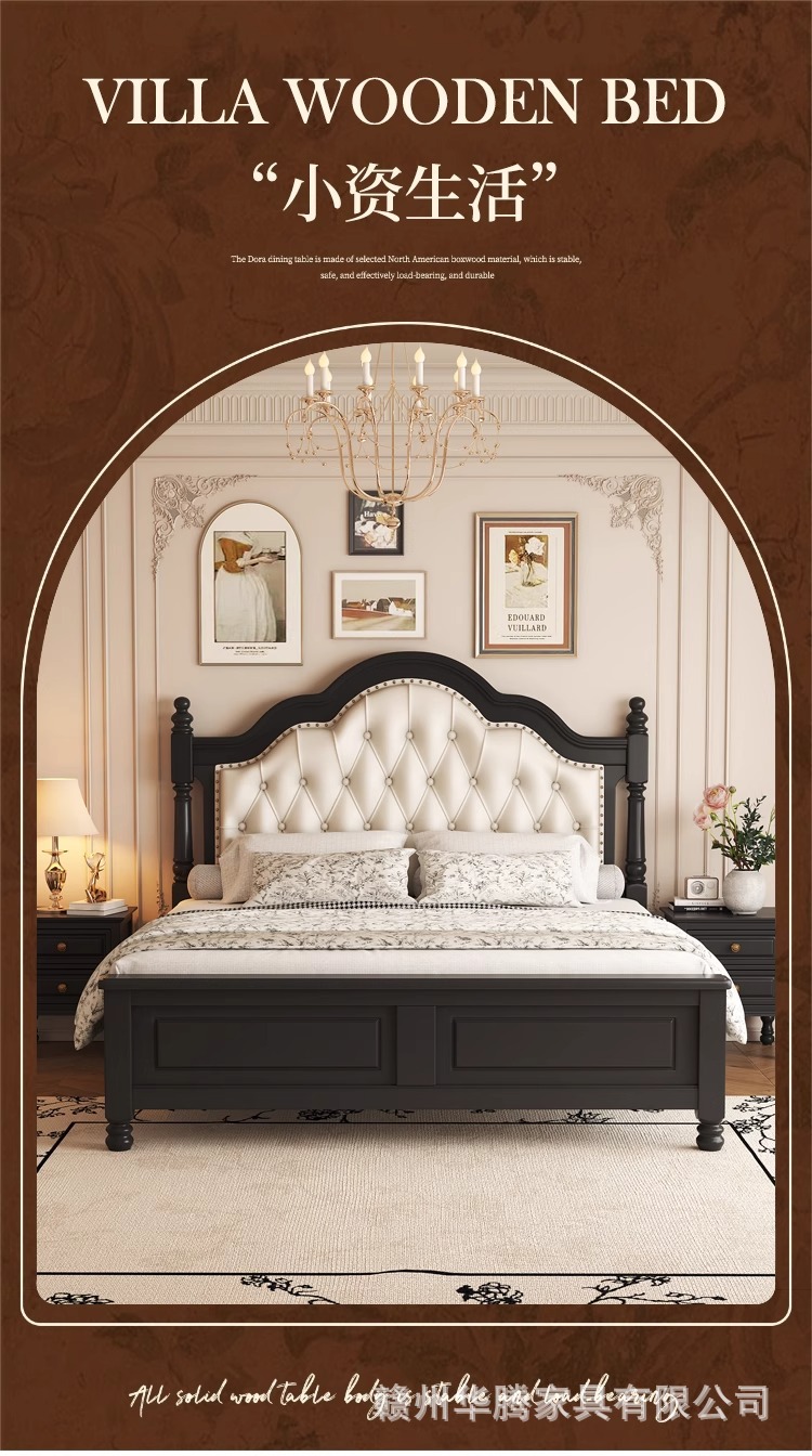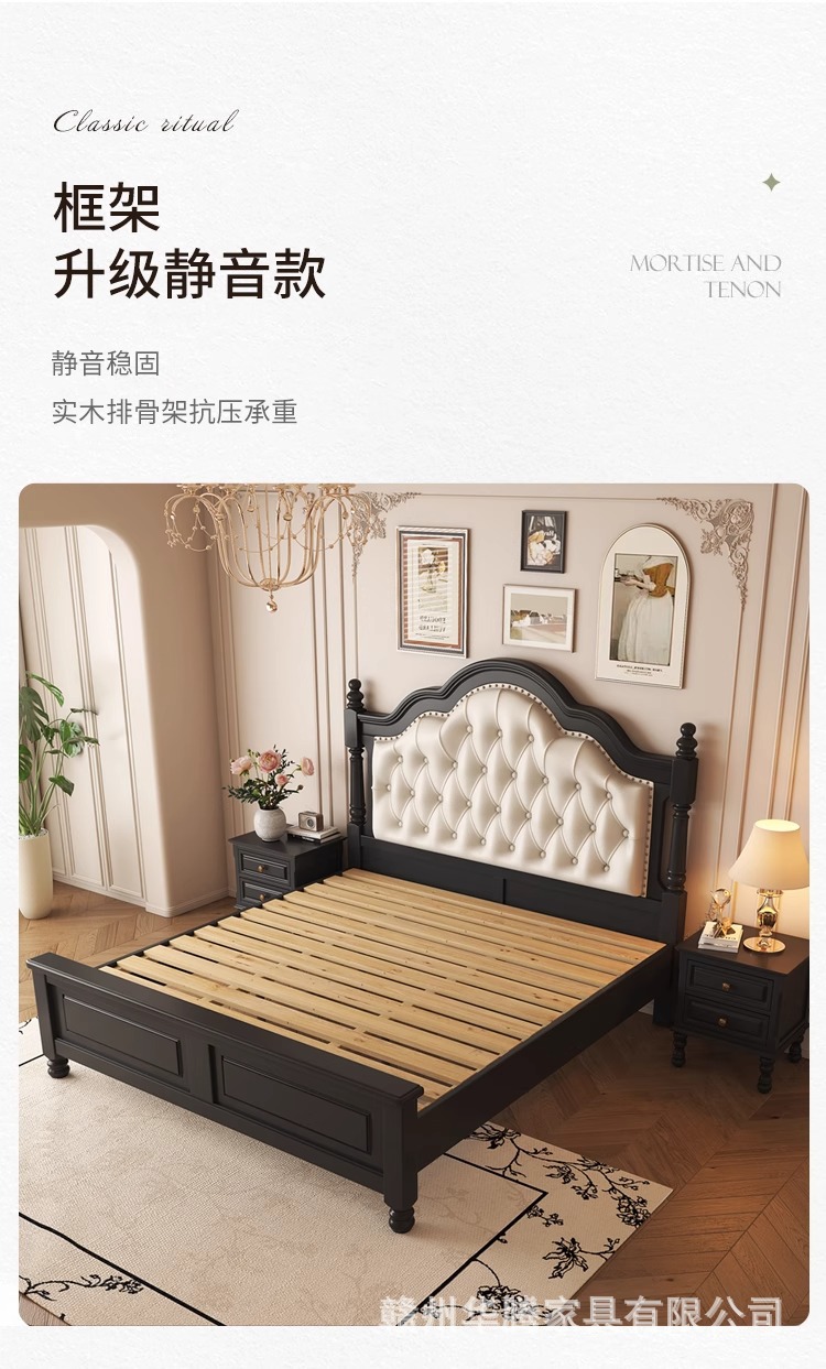 프렌치 레트로 원목 침대, 모던 심플 마스터 침실, 하이엔드 분위기의 더블 침대, 중세 스타일의 가벼운 럭셔리 블랙 침대