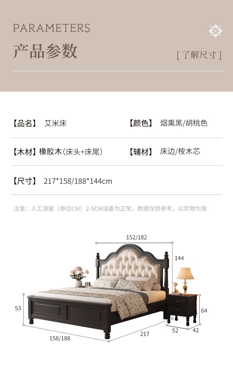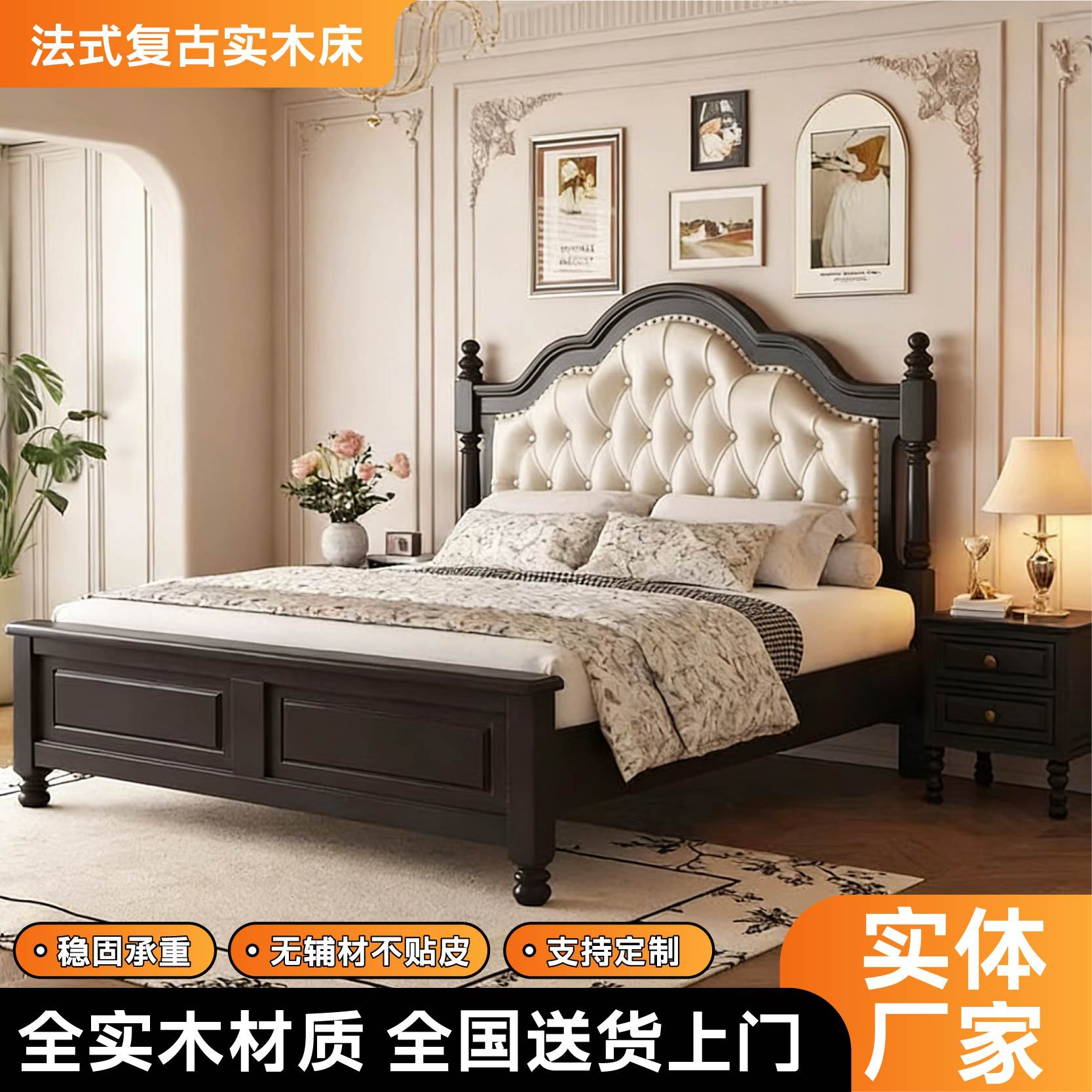 프렌치 레트로 원목 침대, 모던 심플 마스터 침실, 하이엔드 분위기의 더블 침대, 중세 스타일의 가벼운 럭셔리 블랙 침대스토어 가기
