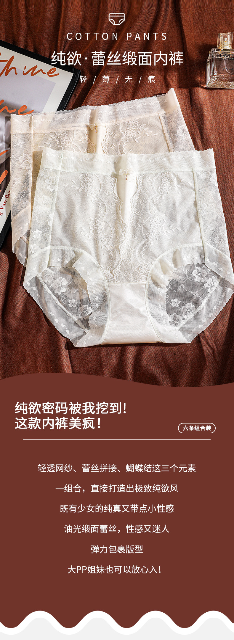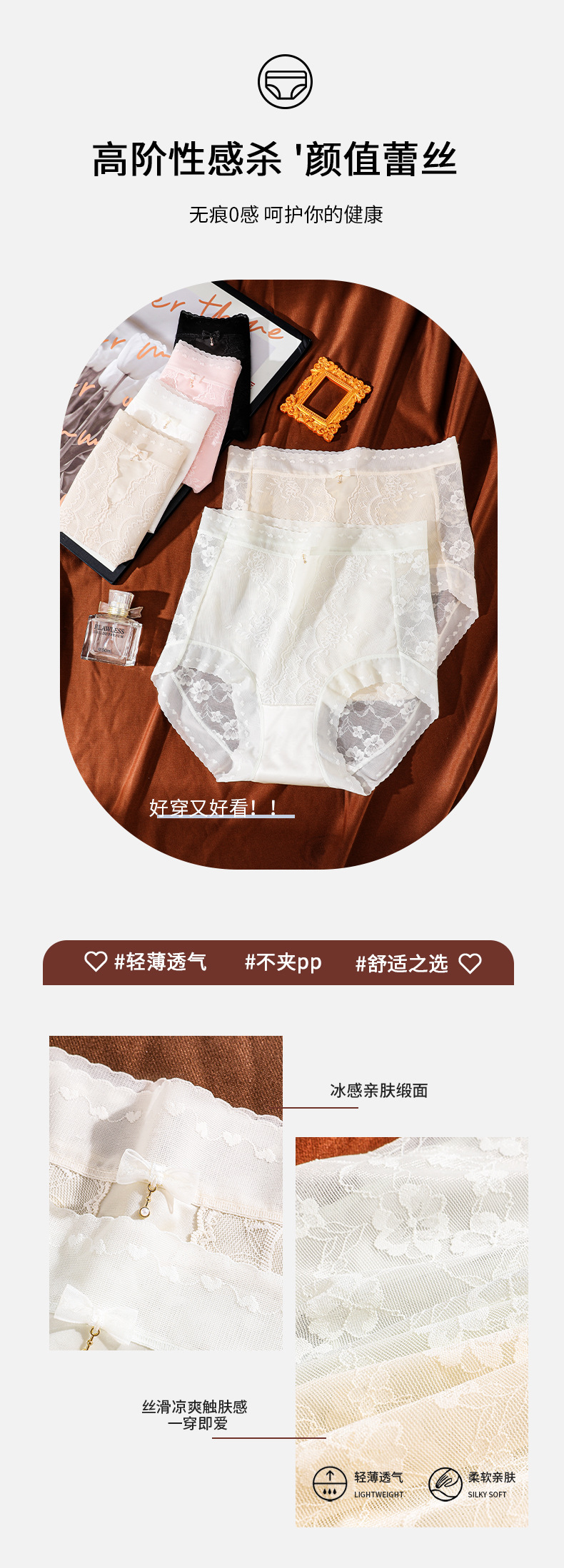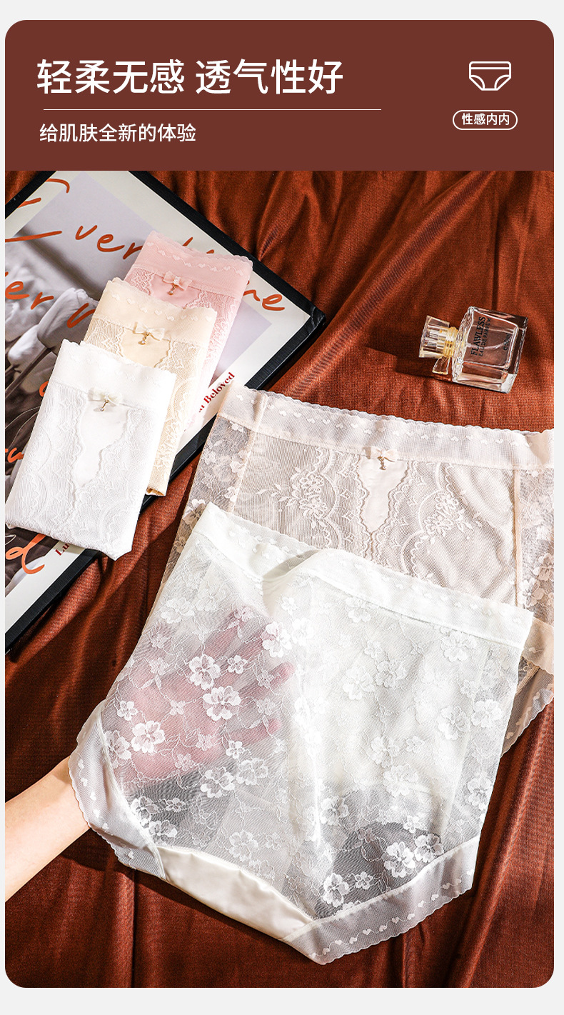 薄透蕾丝性感纯欲内裤女冰感亲肤缎面短裤无痕镂空速干透气三角裤