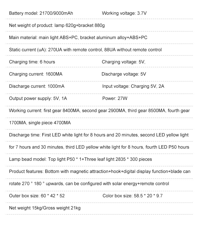 底部带磁吸+挂钩+数显功能+叶片可270°旋转180°朝上,可配置太阳能+遥控器