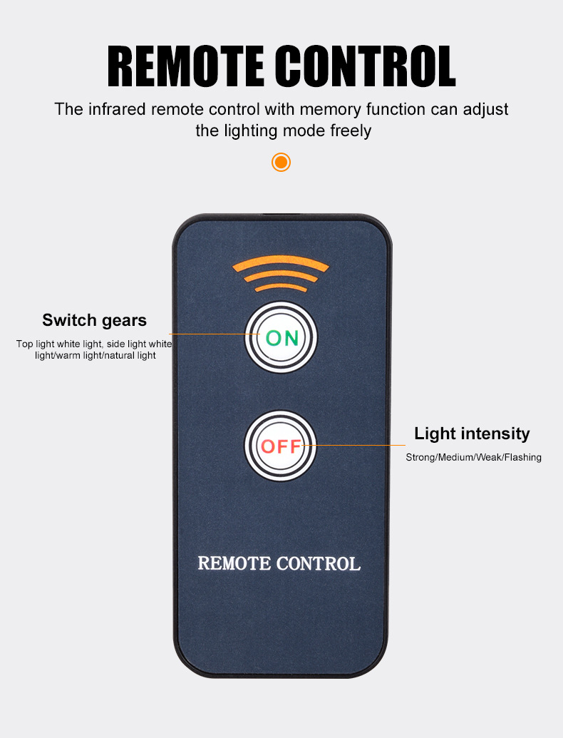 一:右按键,按键第一次,2835白光亮,第二次2835暖光亮,第三次2835暖光加白光同时亮,第四次P50亮,第五次关机,任何情况下长按1秒钟单片白光亮,工作8秒钟后进入记忆功能短按开关关机