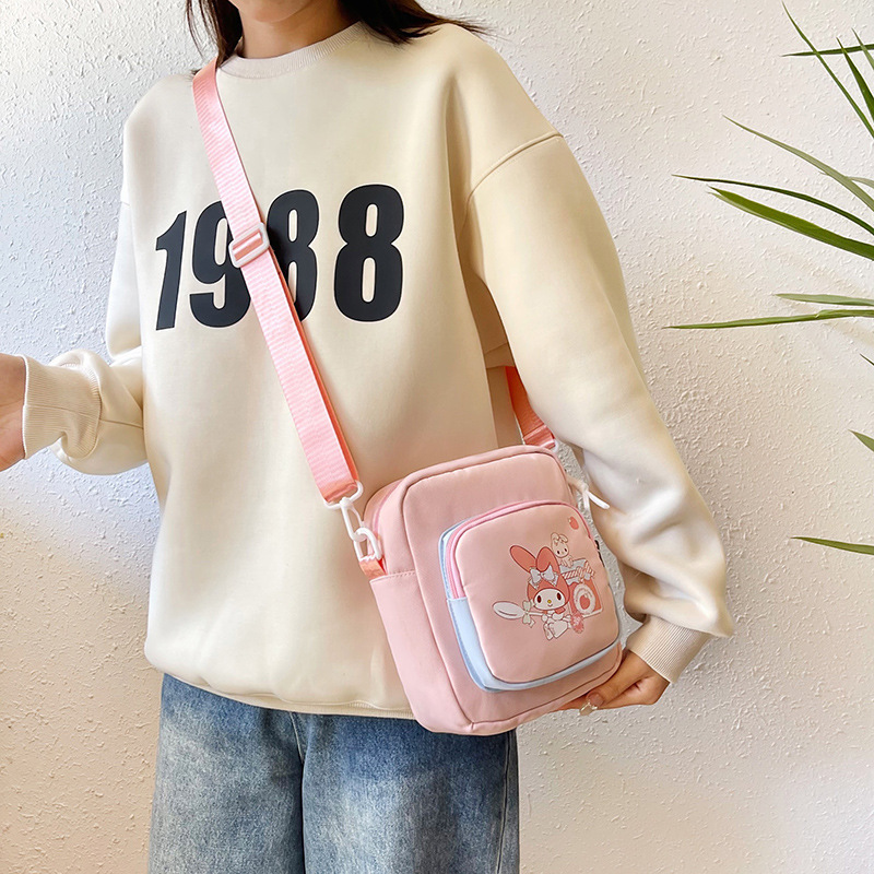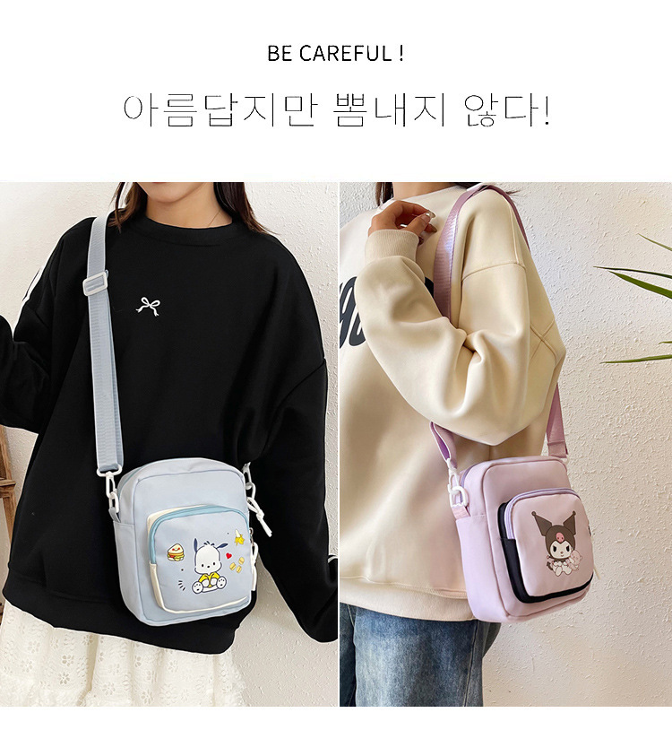 여자를 위한 귀여운 작은 사각형 가방, 일본 소녀, 다용도 크로스 바디 백, 학생 휴대용 수납, 만화 프린트 숄더백