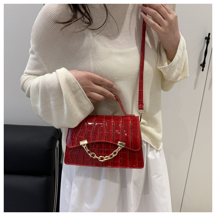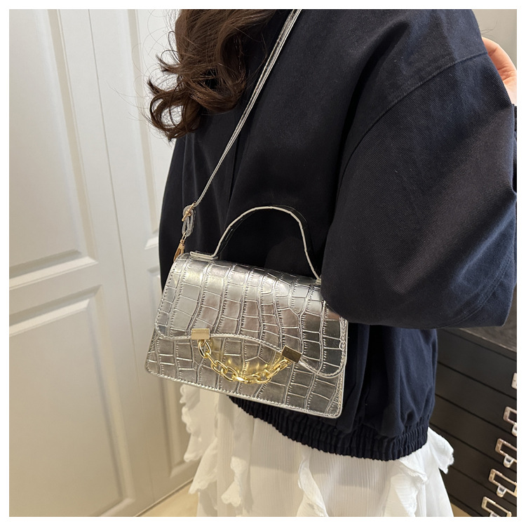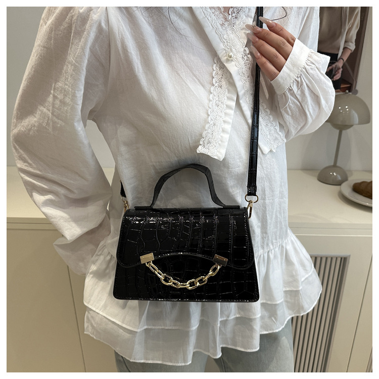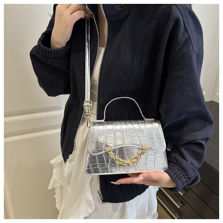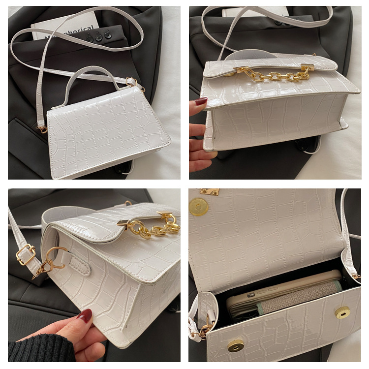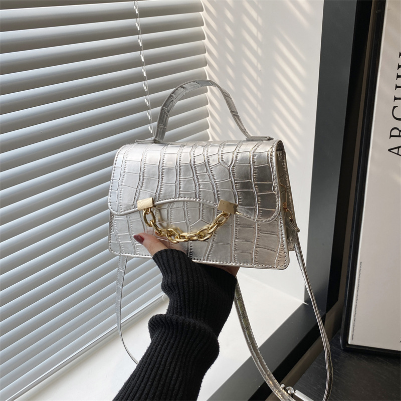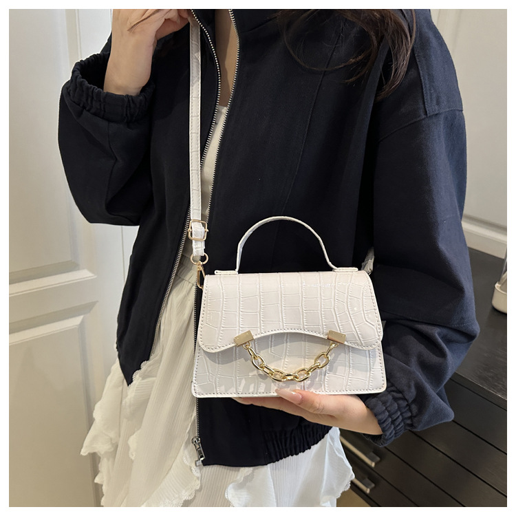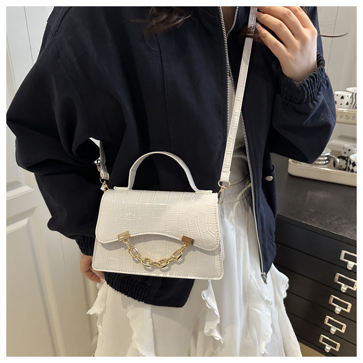 통근 체인 여성용 가방 2025 솔리드 컬러 패션 캐주얼 외국 스타일 싱글 숄더 크로스 바디 휴대용 소형 사각형 가방 트렌디스토어 가기