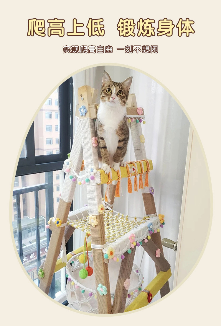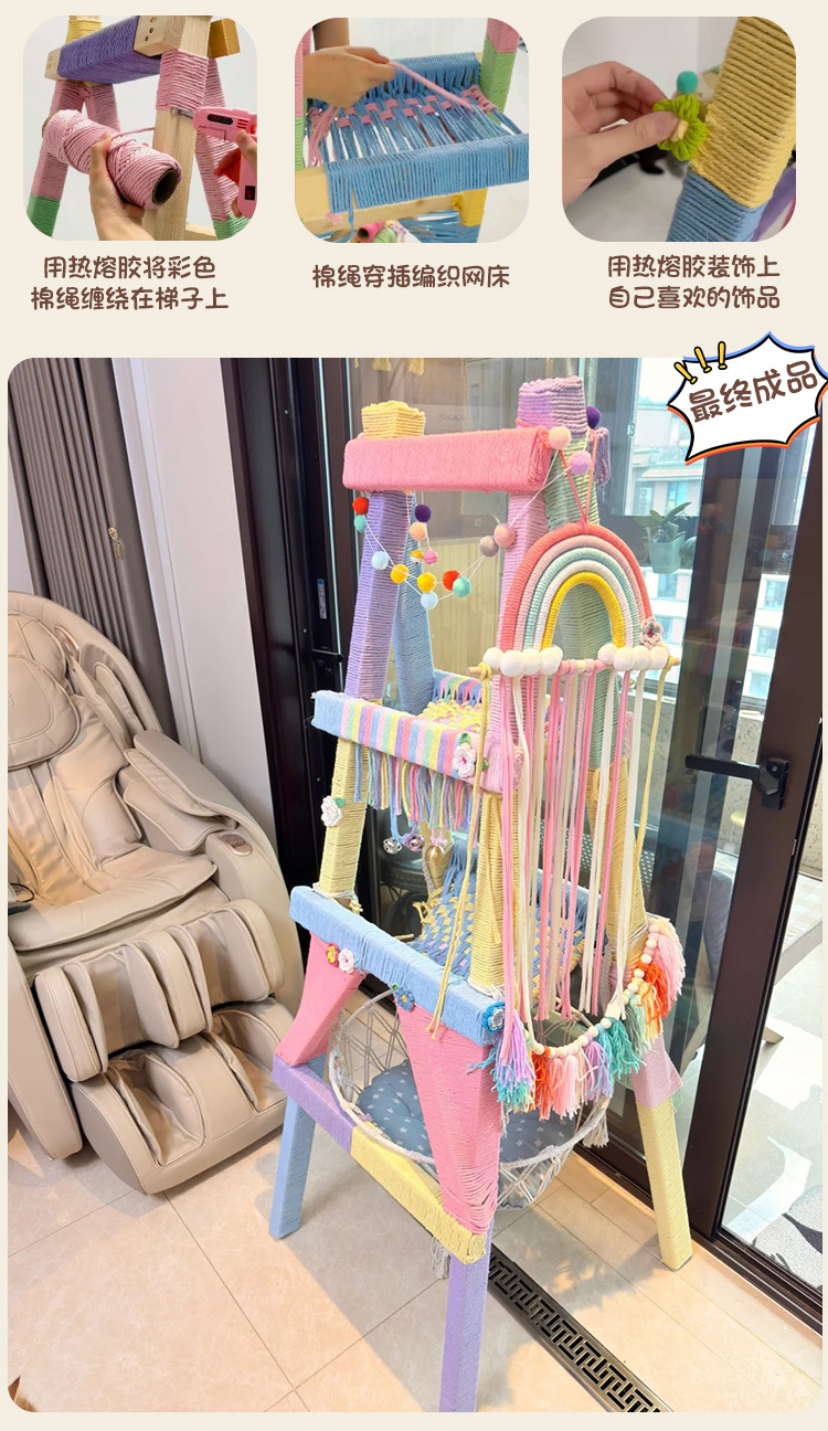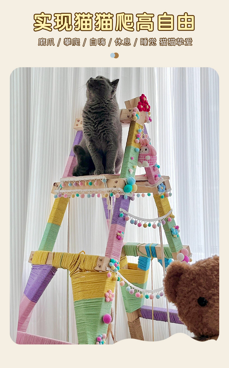 수제 고양이 클라이밍 프레임 사다리 diy 재료 면 로프 클라이밍 로프 사다리 크리 에이 티브 도파민 컬러 고양이 장난감 고양이 스크래치 보드