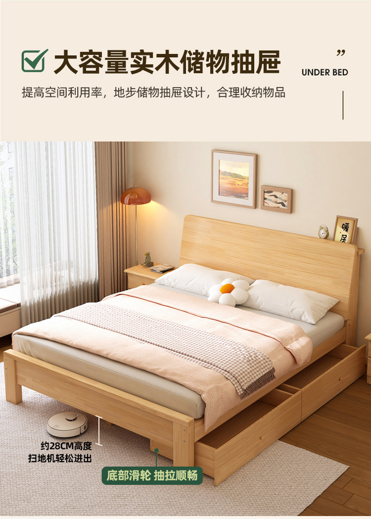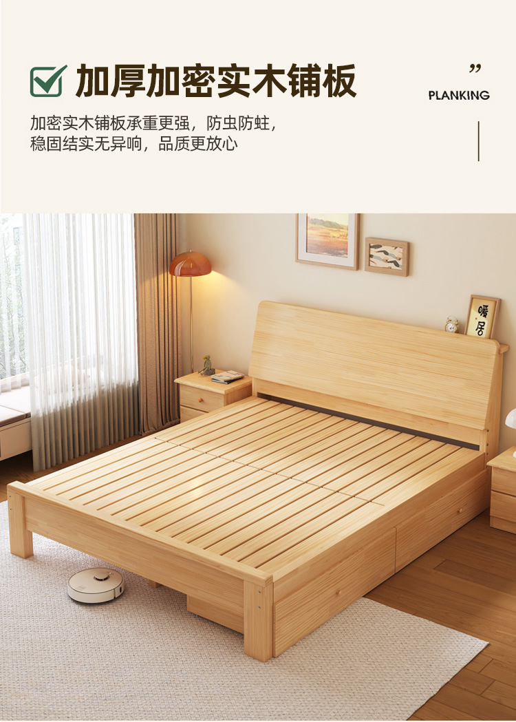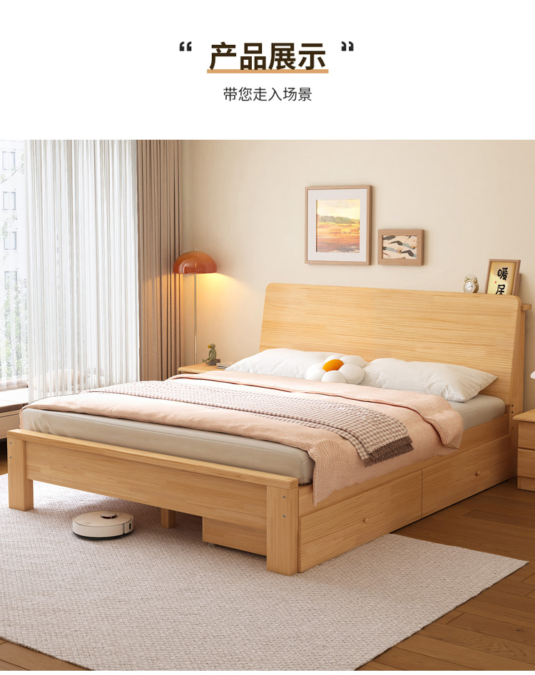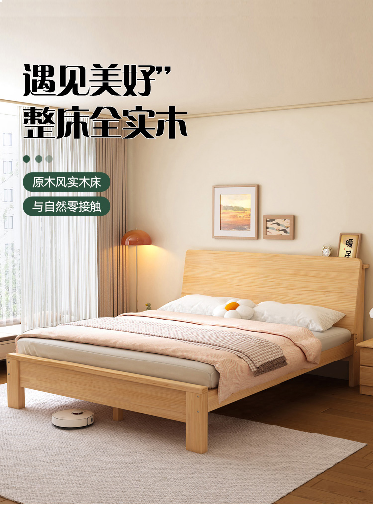 올 원목 침대 1.5m 더블 침대 심플 모던 임대용 싱글 침대 1.2m 가정용 1.8 수납 대형 침대스토어 가기