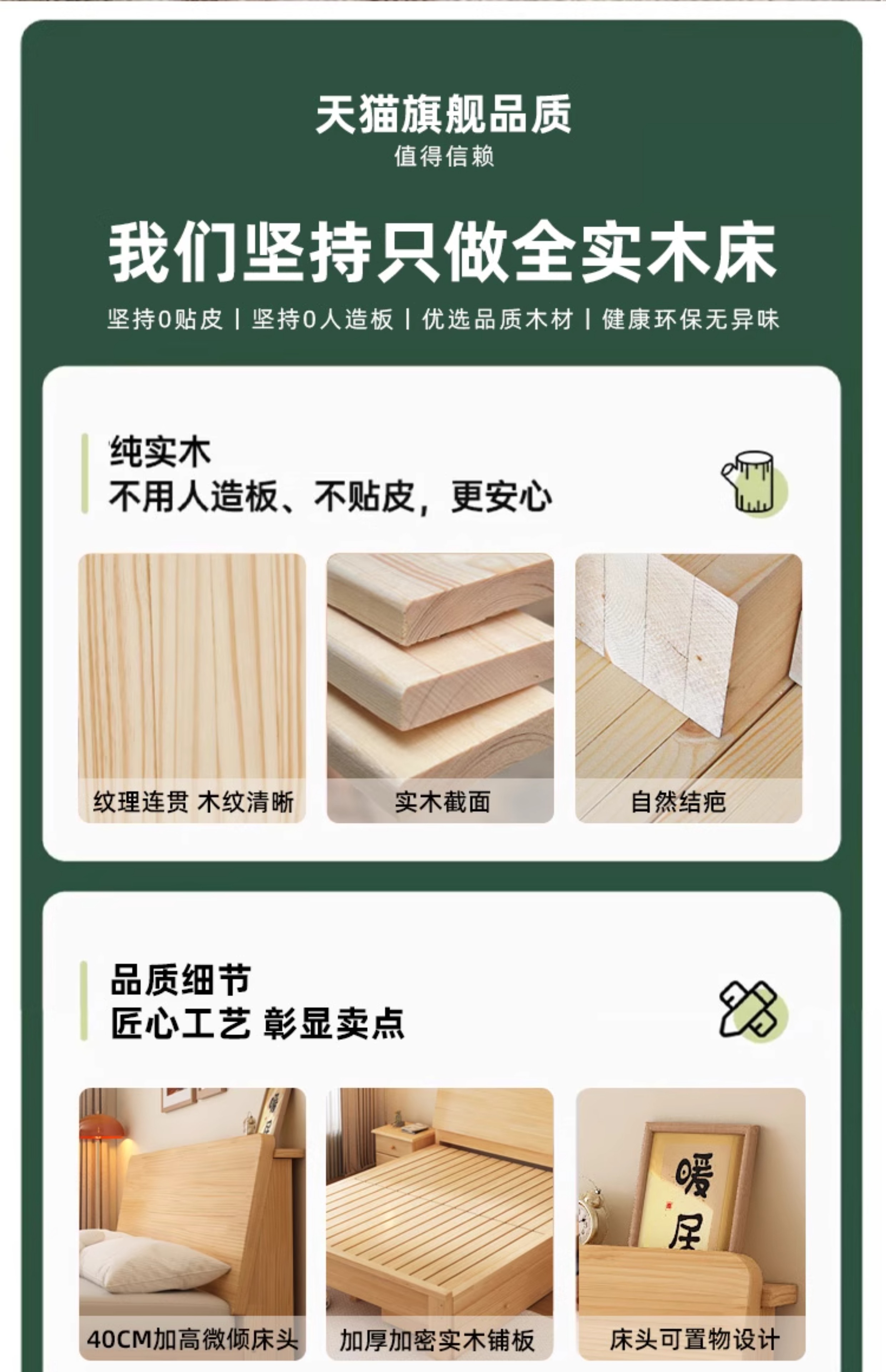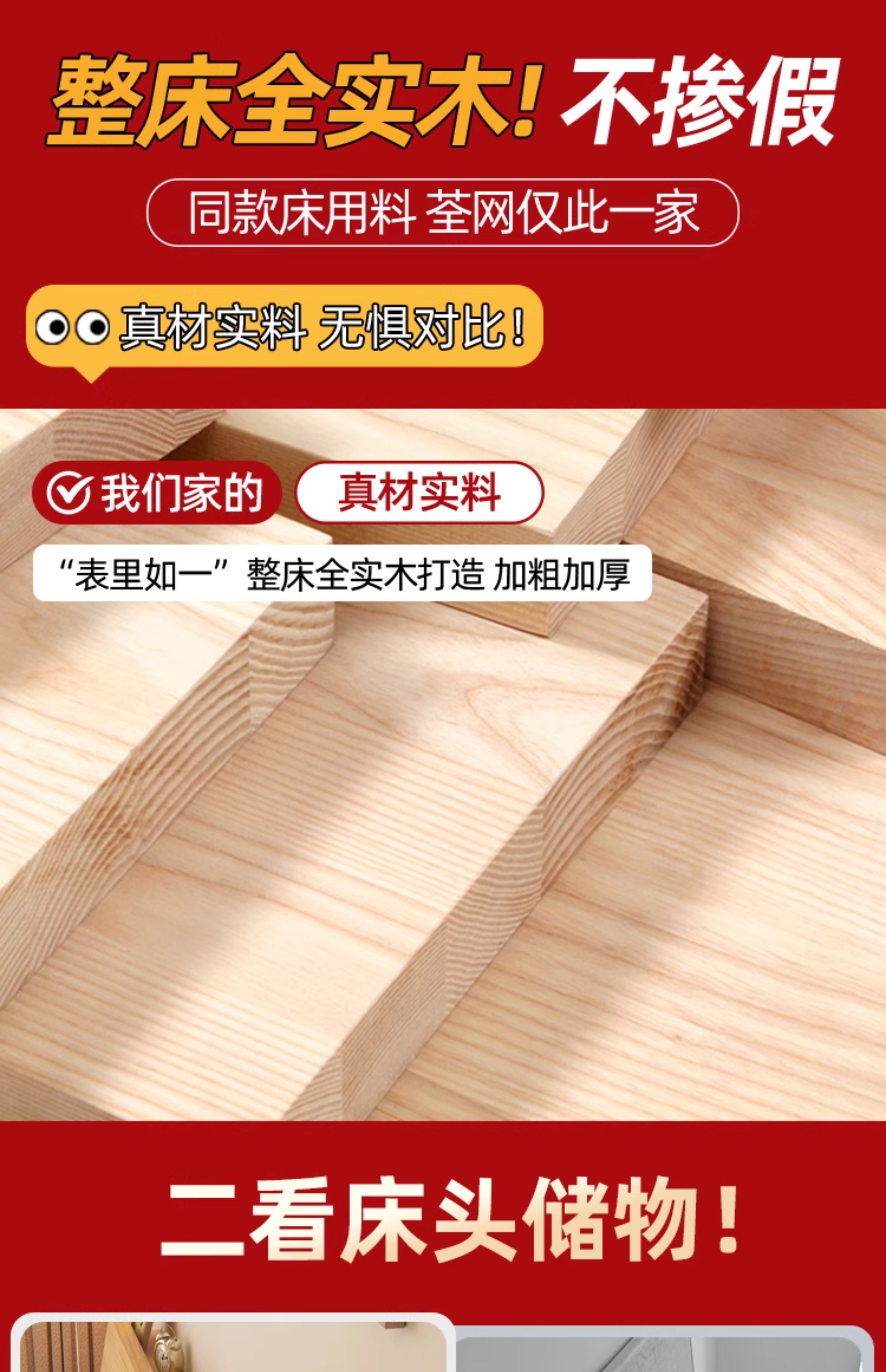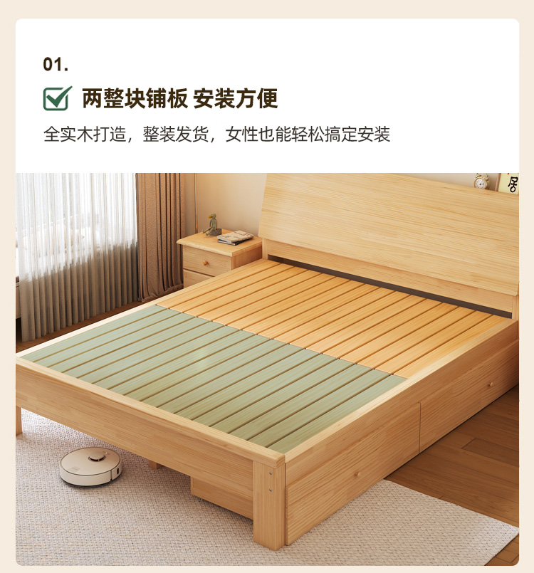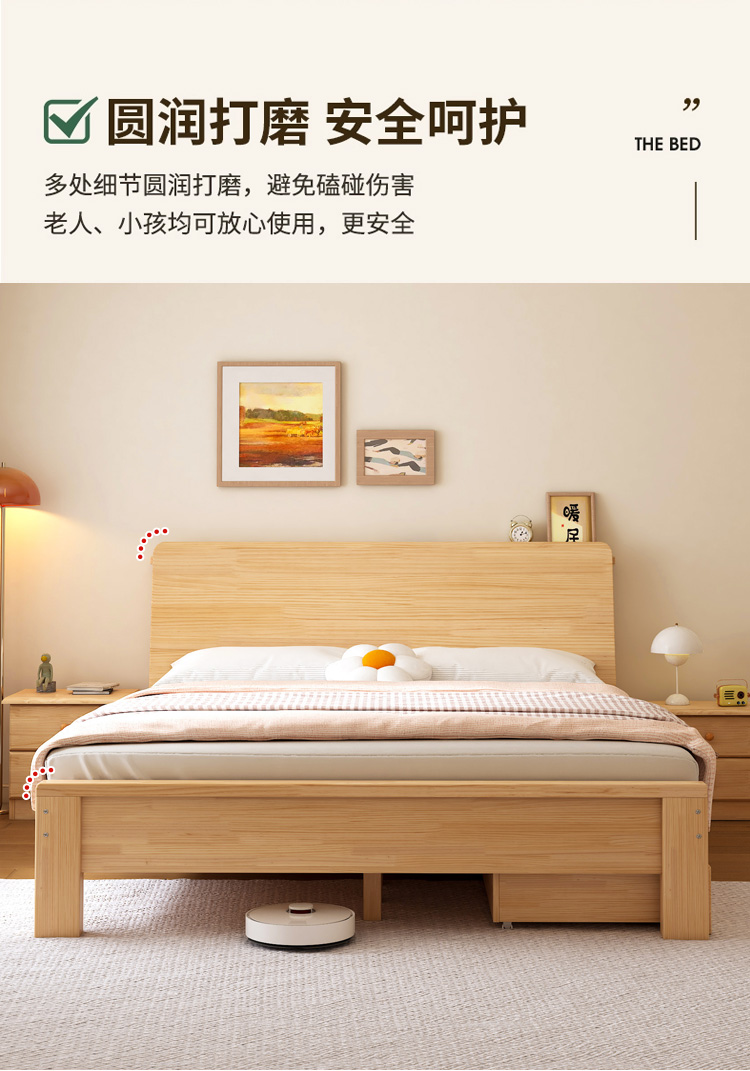 올 원목 침대 1.5m 더블 침대 심플 모던 임대용 싱글 침대 1.2m 가정용 1.8 수납 대형 침대스토어 가기