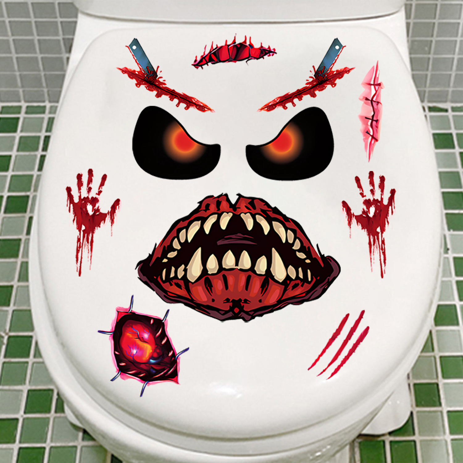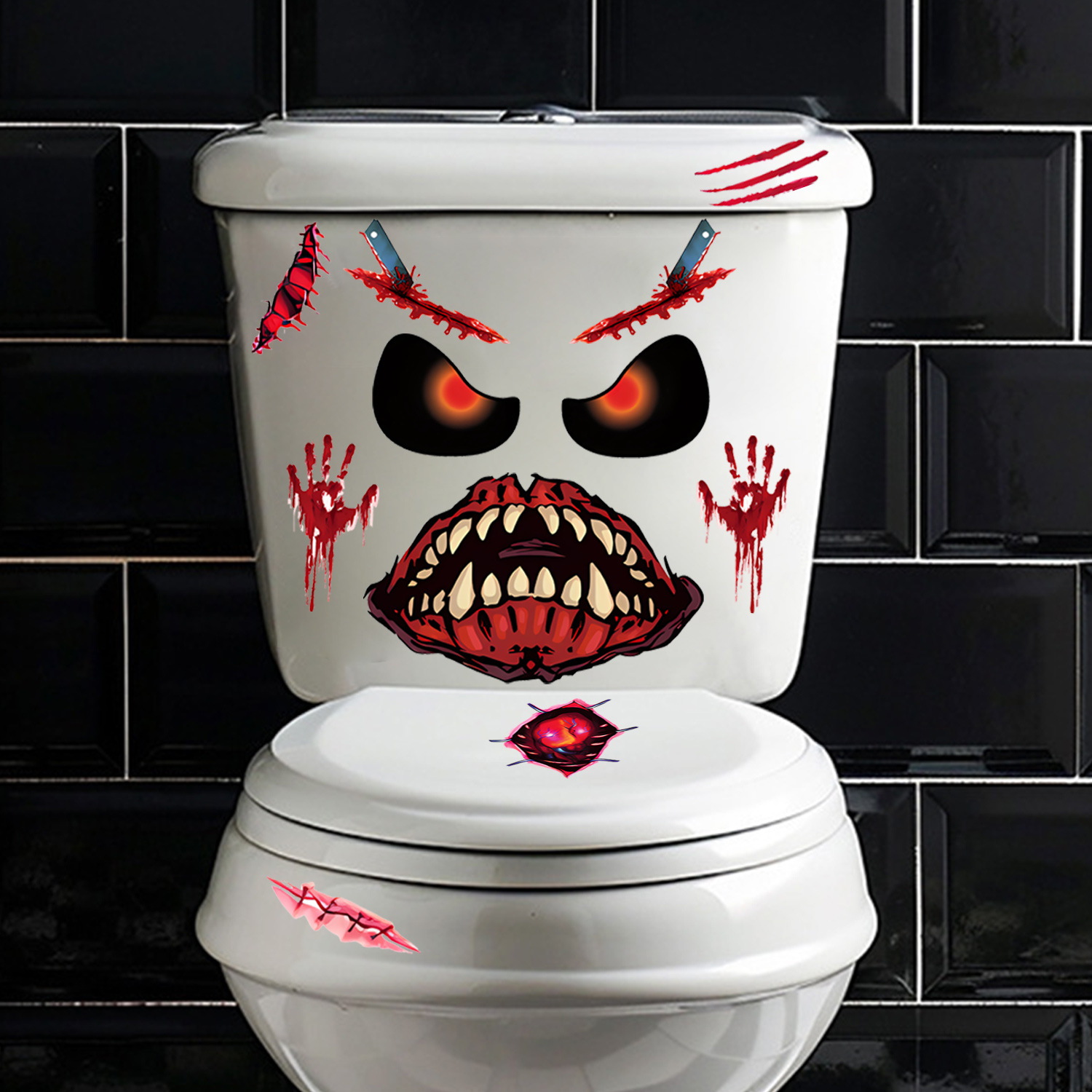 휴일 장식을 위한 새로운 무서운 맞춤형 패턴 스티커, 할로윈 미적 변기 스티커
