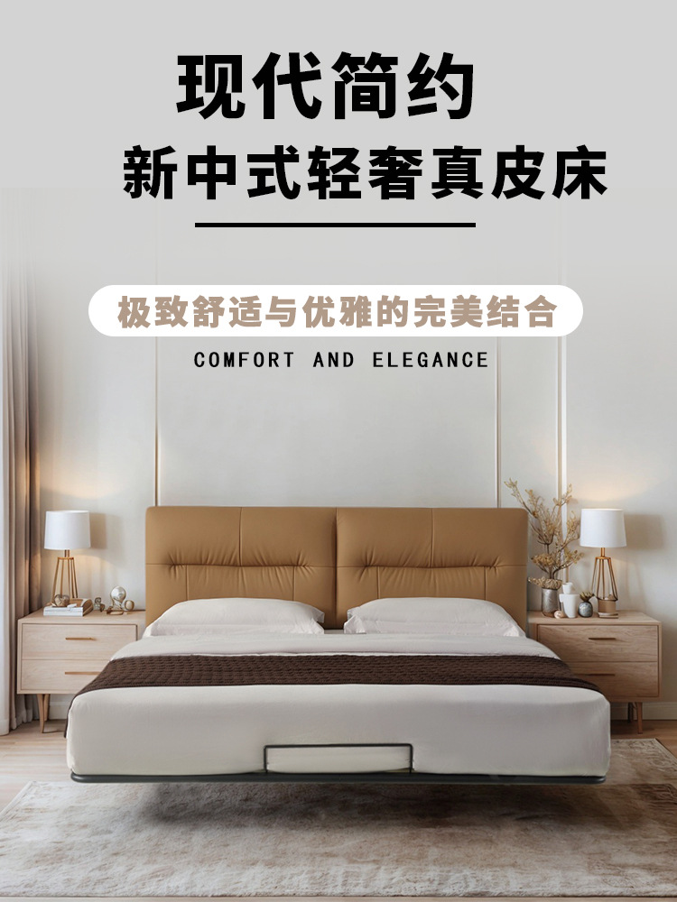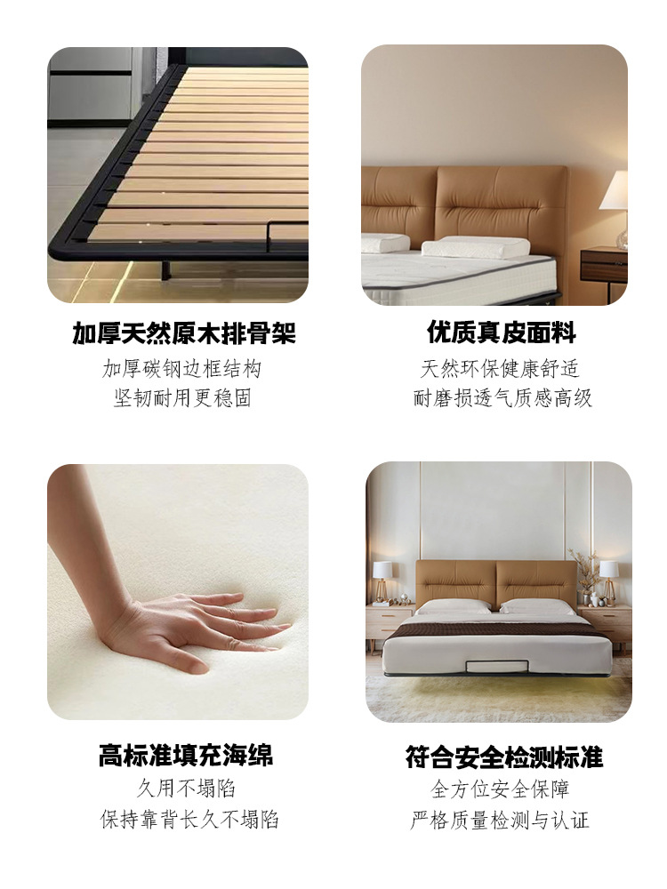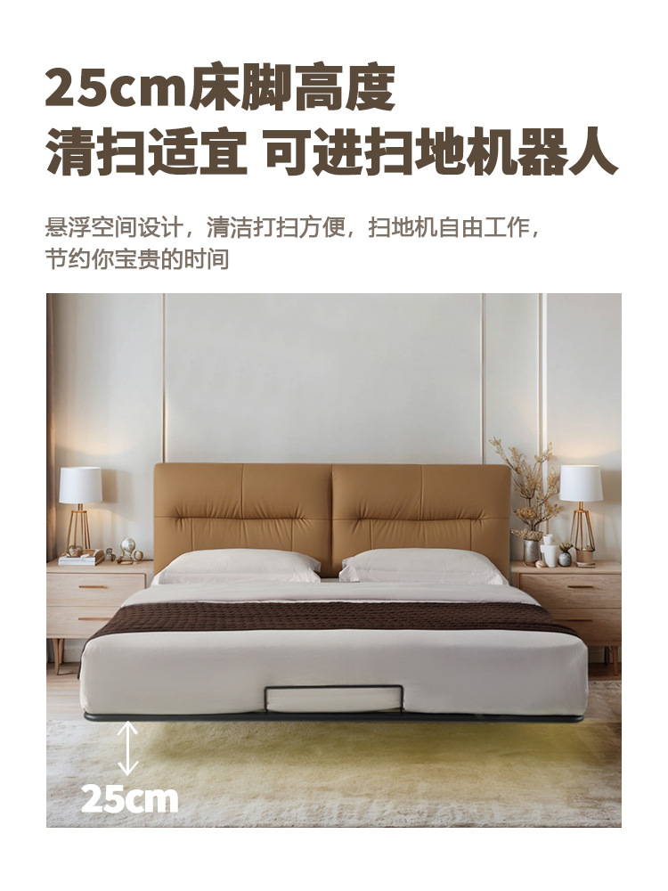 1층 소가죽 천연가죽 침대 프렌치 스타일 더블 침대 마스터룸 1.8m 소프트 가죽 침대 서스펜션 침대 프레임 서스펜션 디자인스토어 가기