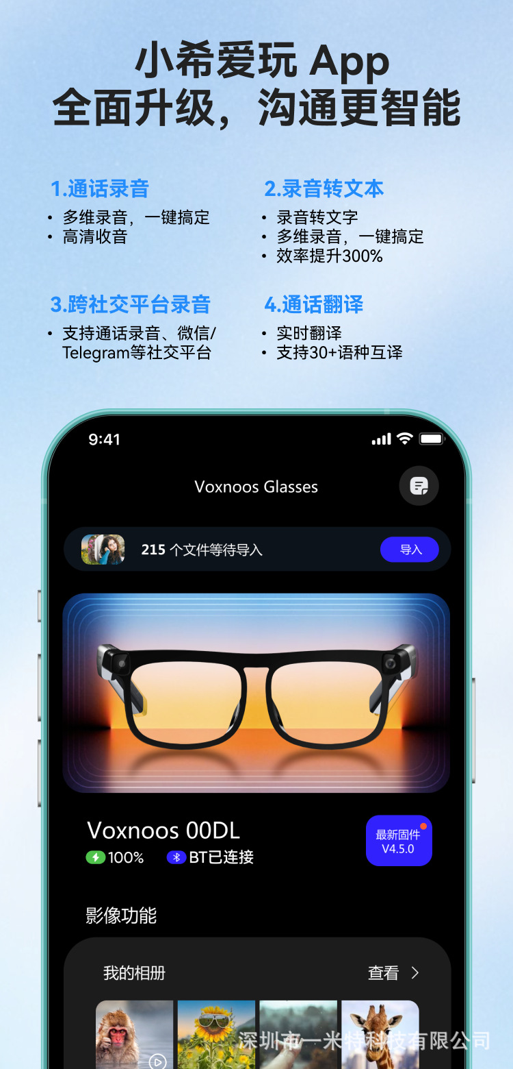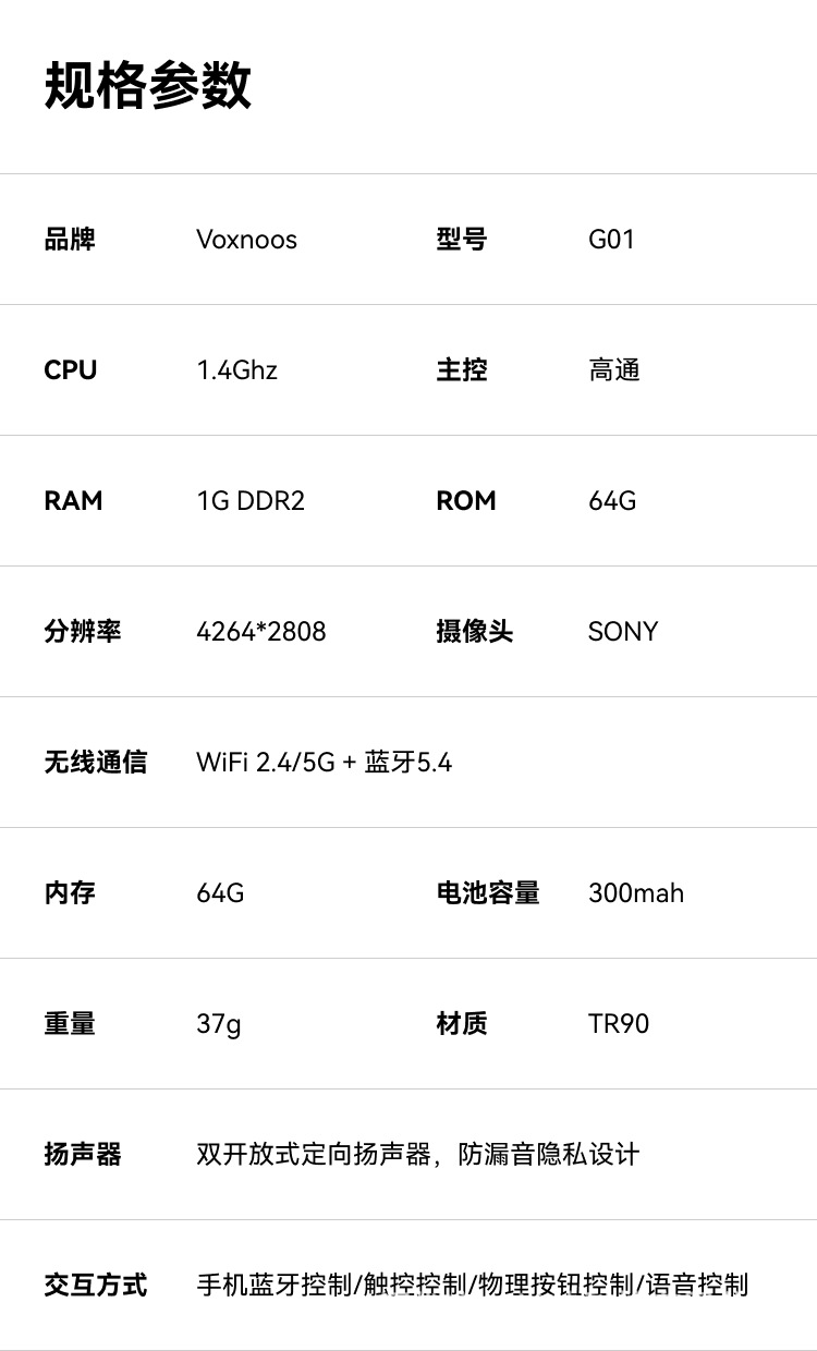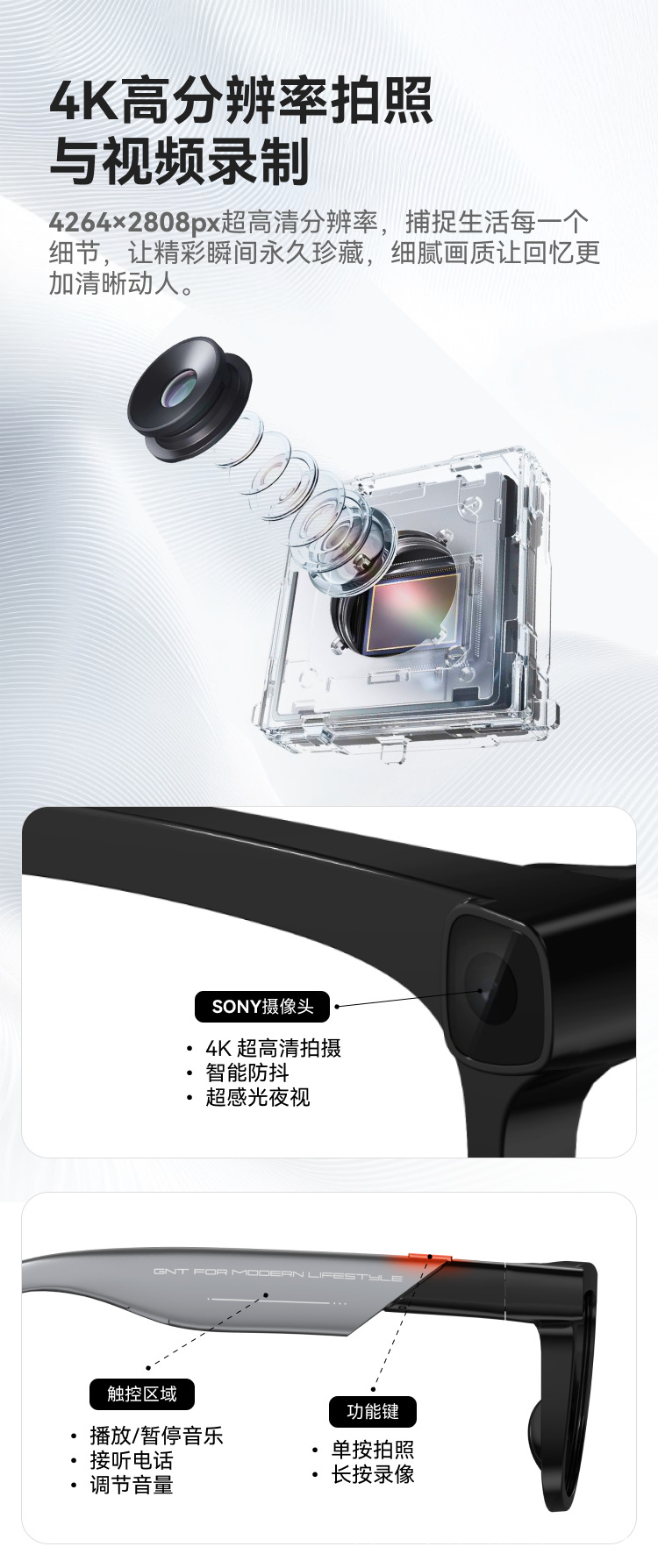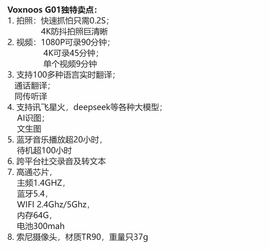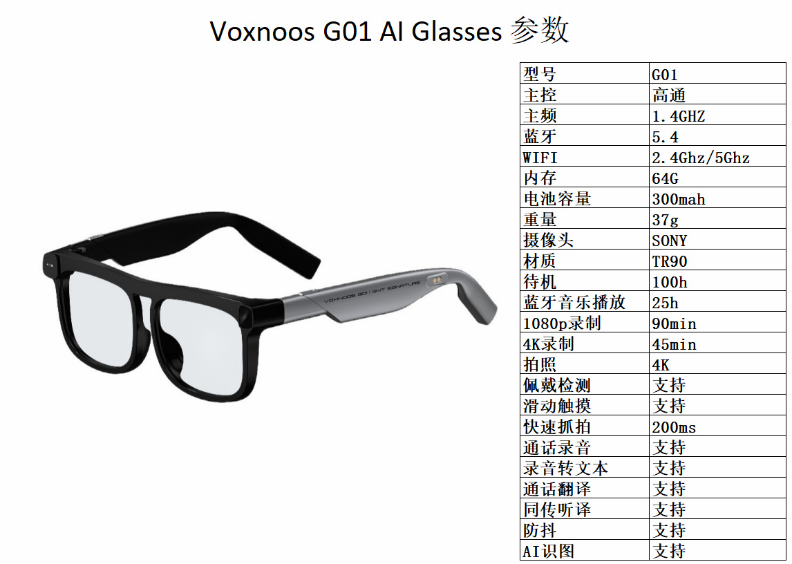 AI 스마트 카메라 안경 사진 촬영 4K 비디오 통화 번역 녹음 대형 모델 이미지 인식 Voxnoos G01