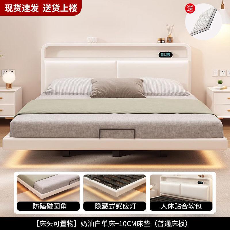• 서스펜션 침대에는 센서 조명이 장착되어 있으며 침대 옆에 보관할 수 있는 공간이 있습니다. 흰색