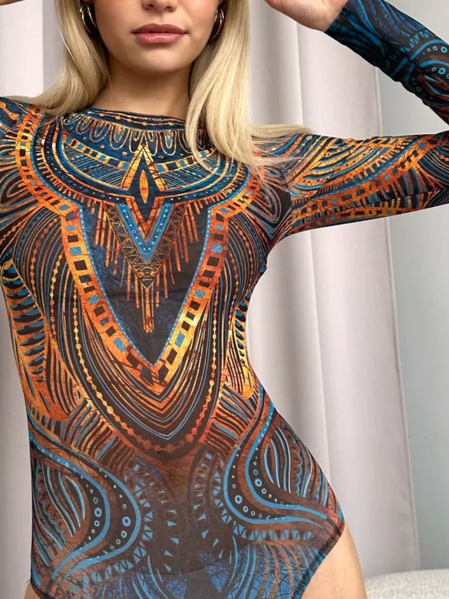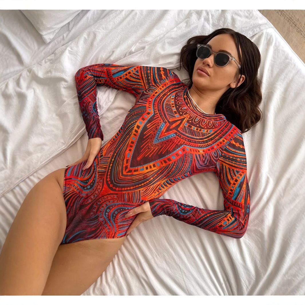 2025 러시아의 새로운 메쉬 원피스 비키니 포지셔닝 프린트 수영복 여성 유럽과 미국의 안티 태양 수영복 도매