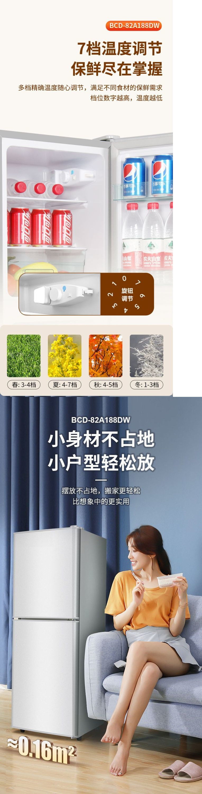 • AZ36 이중 도어 + 상부 냉동고 및 하부 냉장고 + 조명.